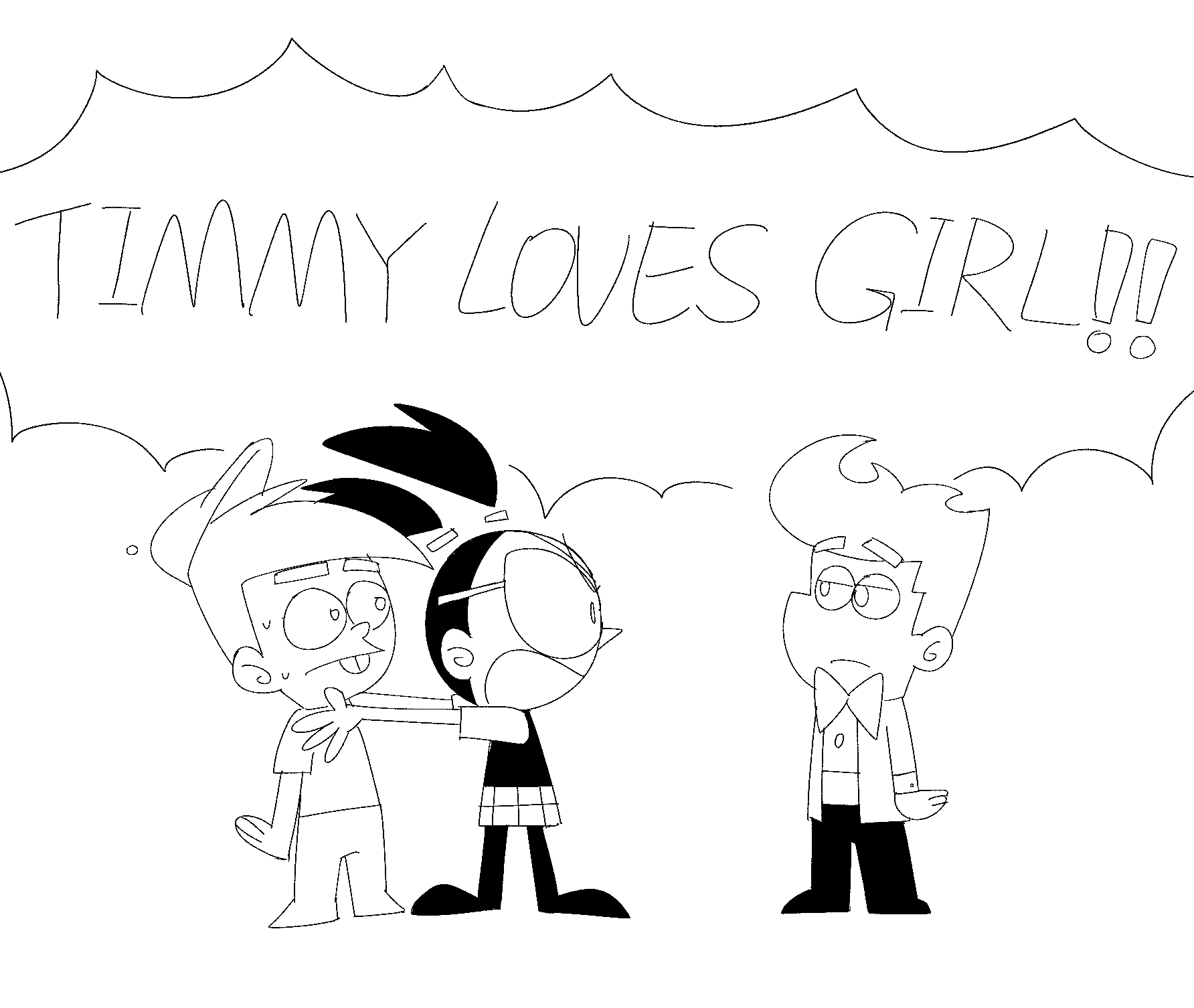 >>153407205It’s quite obvious that the kids share design elements with Timmy, Tootie and Trixie. Both girls have black hair, and she has Tootie’s glasses and Trixie’s headband. This didn’t used to be controversial at all haha