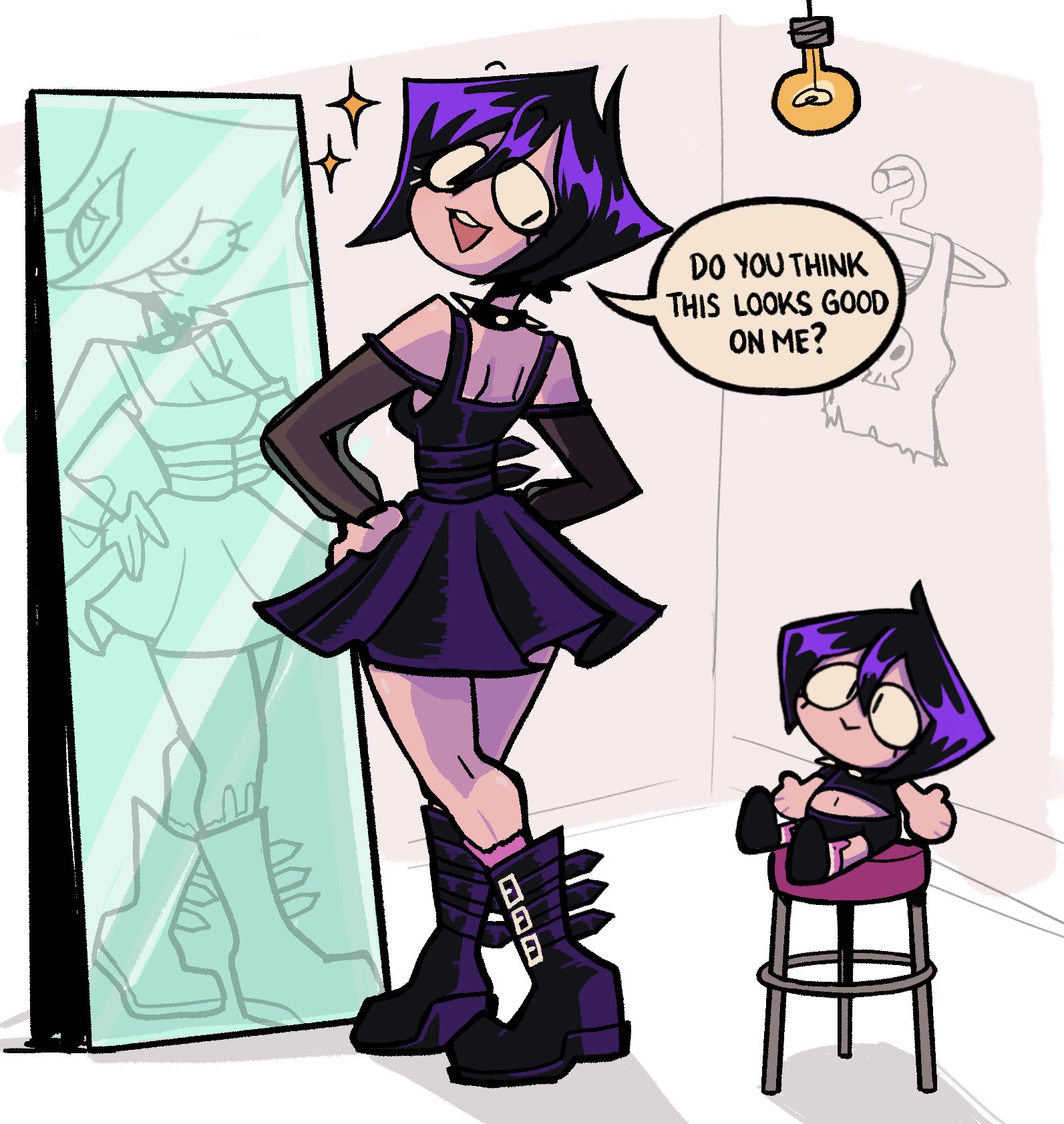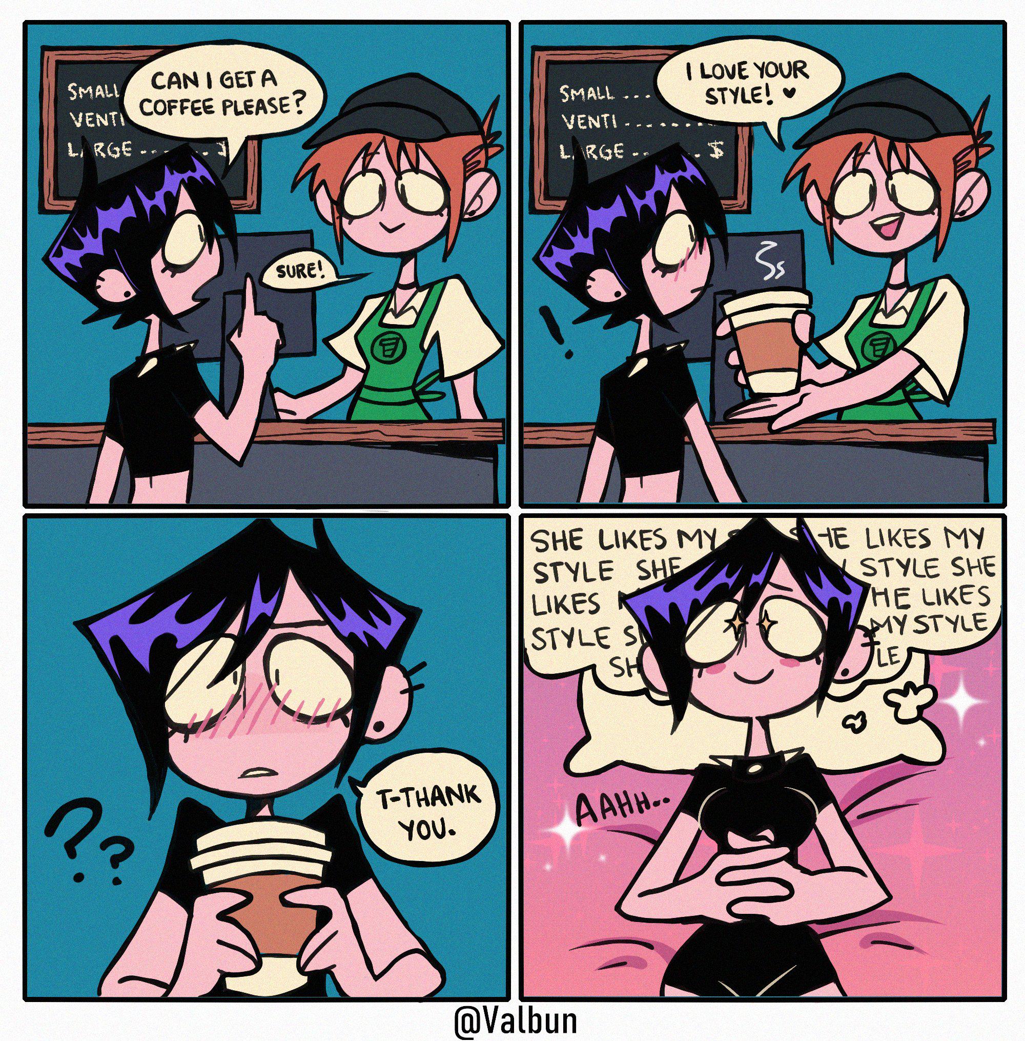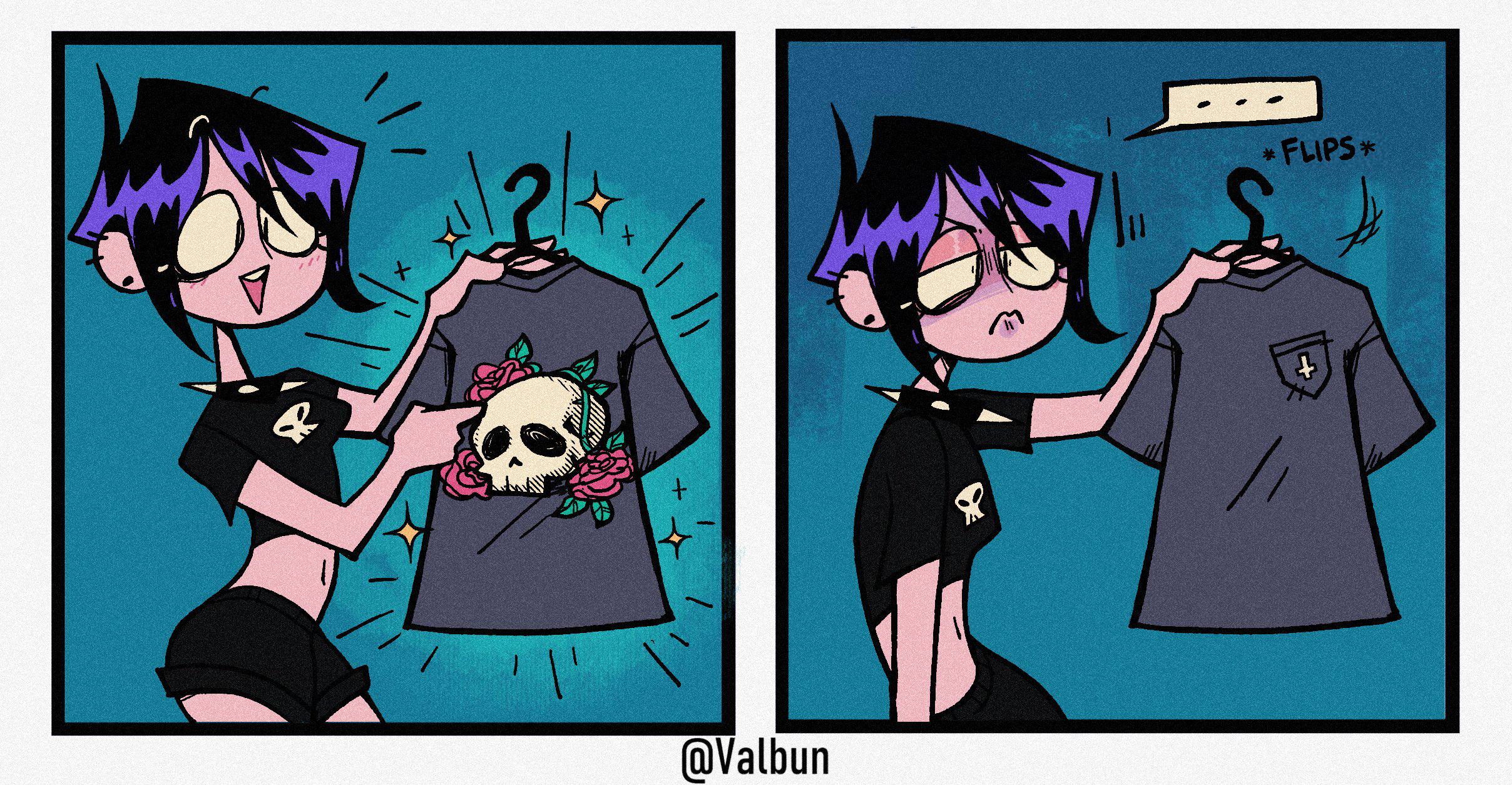 >>153401878This. Every single comic is just some variation of "teehee I'm so cute but also different because I'm a goth that likes cute things". She needs to just draw purely lewd art of herself.