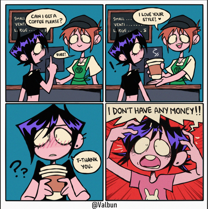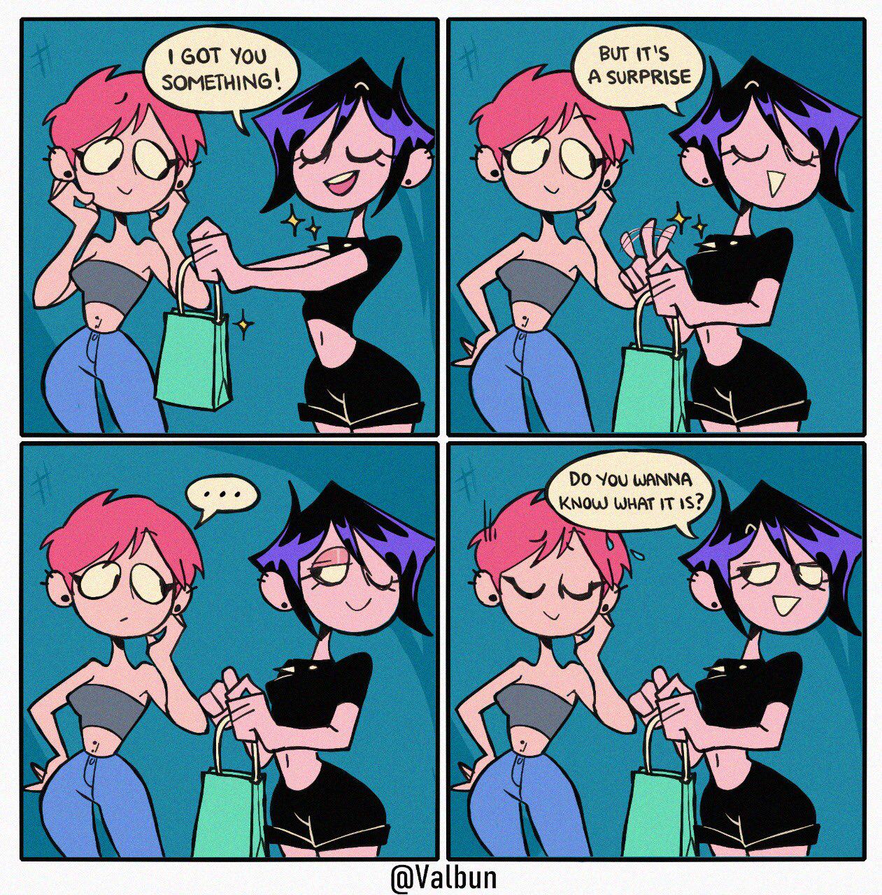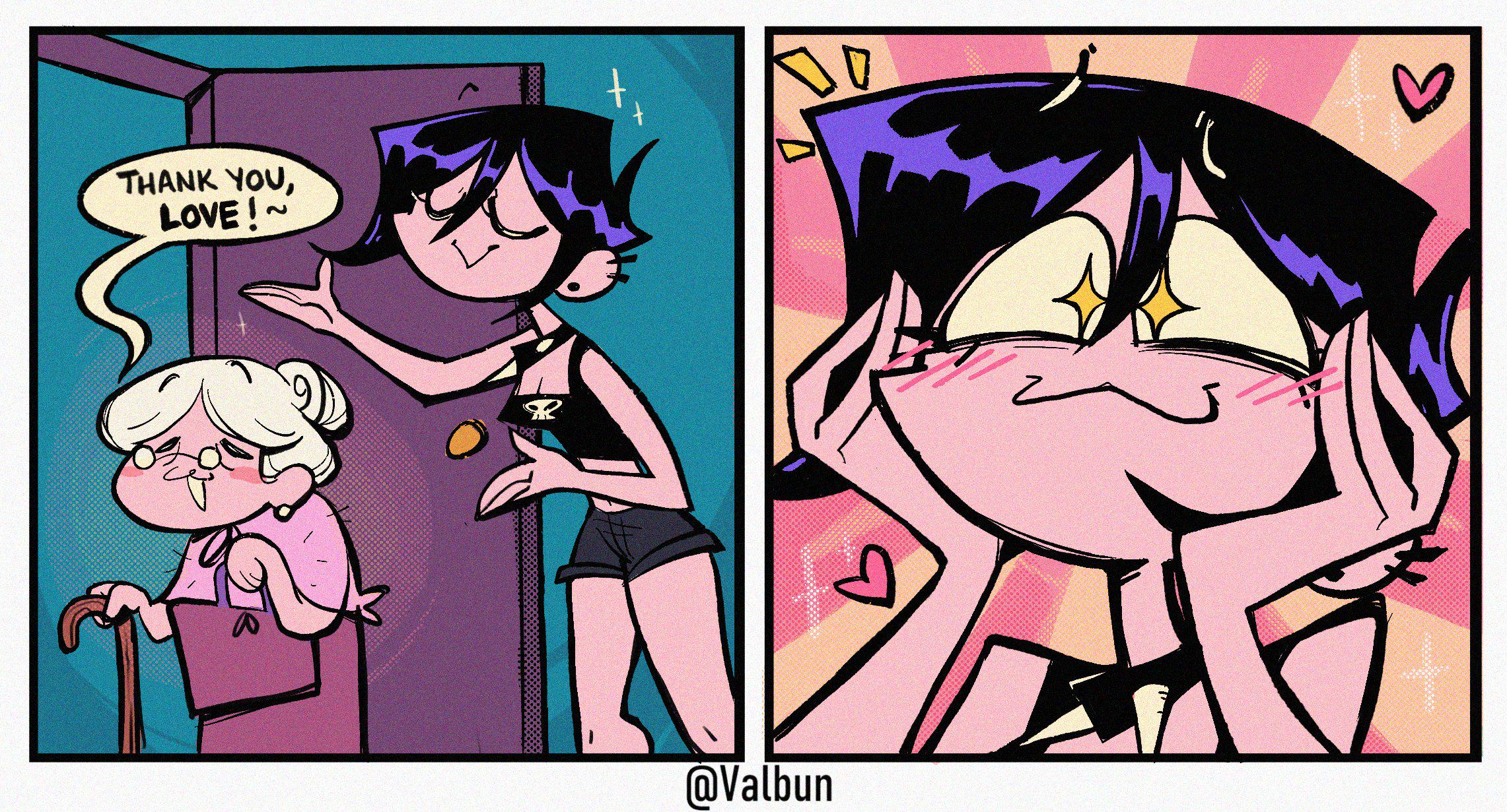 >>153421311I remember she was one of those upcoming artists back in 2020 on Twitter by making the same kind of comic formats like valbun but she apparently messed her wrist up and rarely draws now and resorted to sex work, kind of sad.