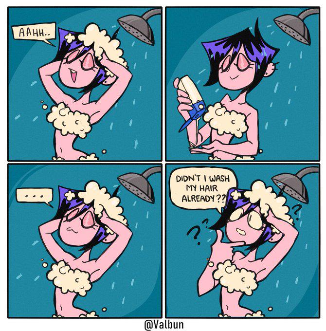 >>153402059>Didn't I wash my hair alreadyYeah, but you're supposed to lather and rinse twice. That's why "repeat" comes after