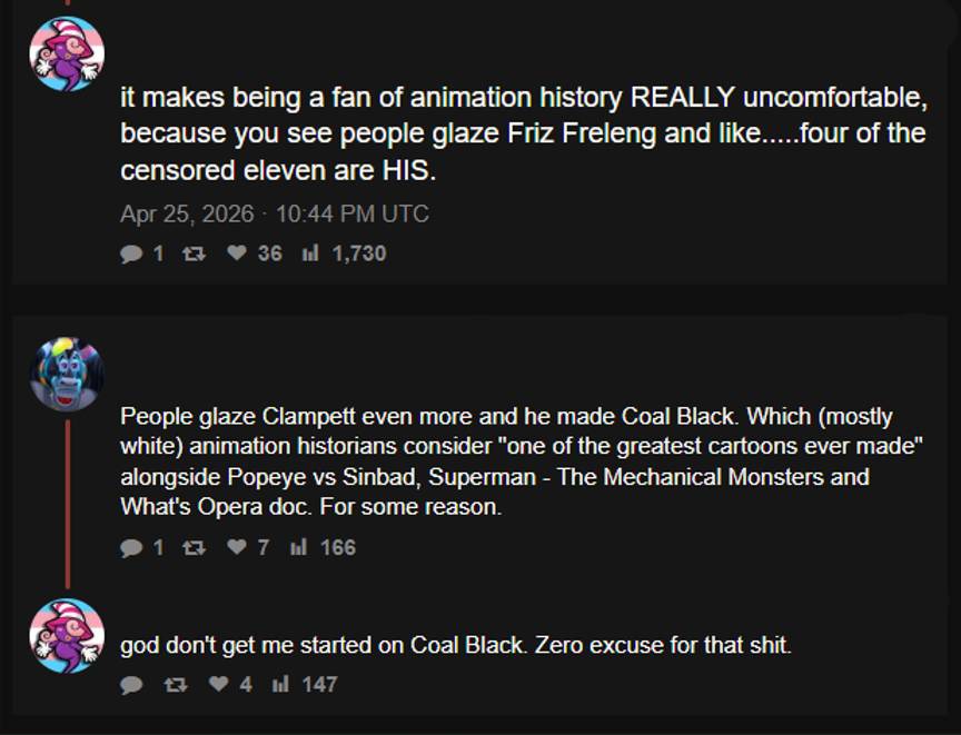 The thing about Coal Black is it was actually made with the help and input from a whole troupe of black actors at the time. You can argue the short has aged badly but It's nearly 100 years old war propaganda cartoon. For what it was it was actually a rare opportunity for black people to see themselves in Cartooons, which rarely even gave them a spotlight.