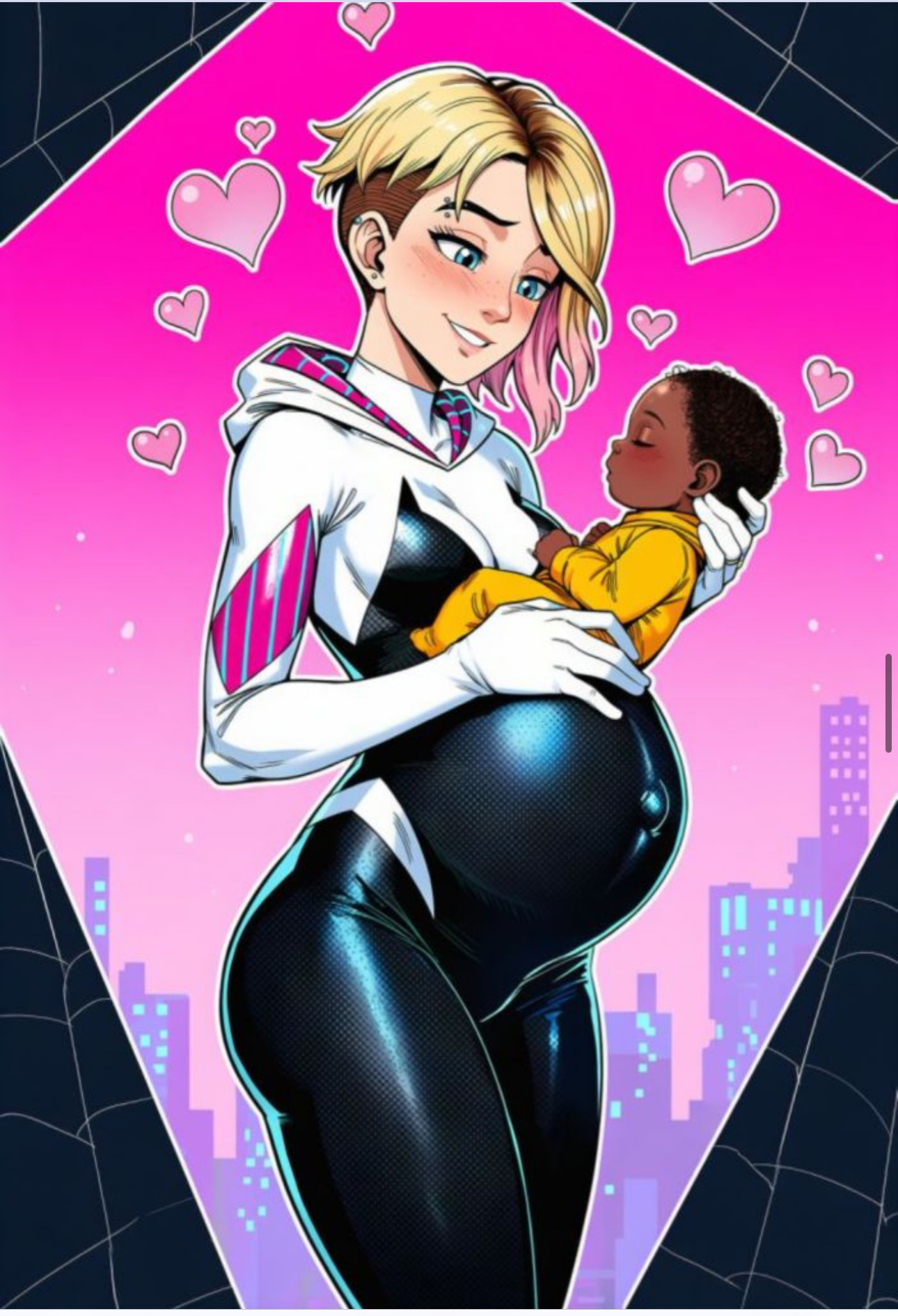 Miles Morales and Gwen Stacy son name Markus Morales.Name is Slinger.