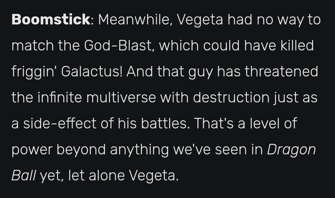 >>153416392Thor was a Celestial level of power, not similar. Don’t try to change what they said. In later matches they said Iron Man is Celestial level vs Batman