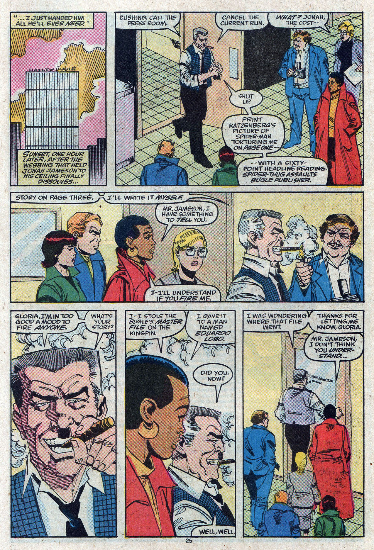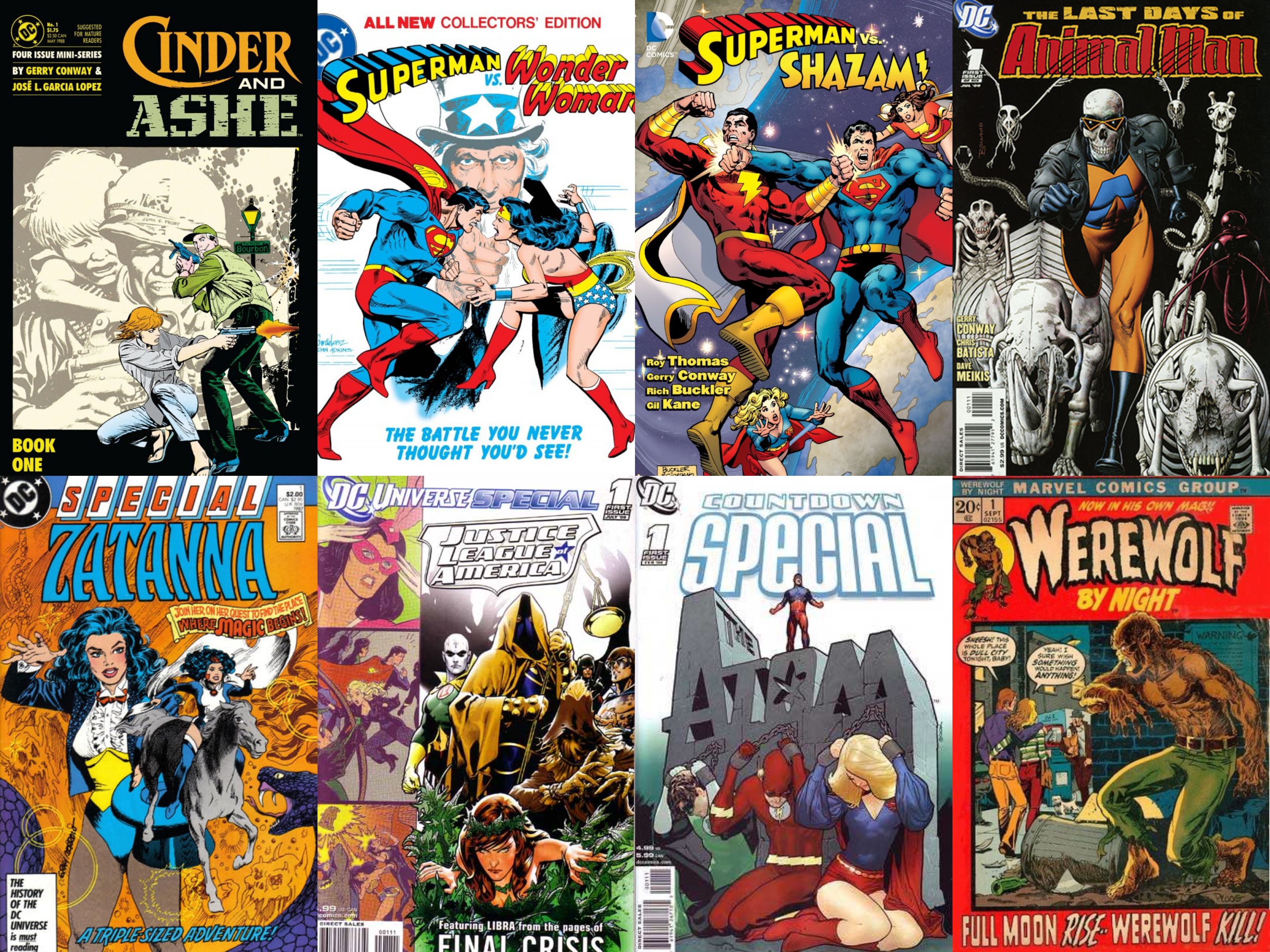 >Conway was a frequent collaborator with Roy Thomas. Together they wrote a two-part Superman–Captain Marvel team-up in DC Comics Presents #33–34 (May–June 1981); the Atari Force and Swordquest mini-comics packaged with Atari 2600 video games; and three Justice League of America-Justice Society of America crossovers.[44][45] Conway contributed ideas to the talking animal comic Captain Carrot and His Amazing Zoo Crew!, created by Thomas and Scott Shaw.[46] Thomas and Conway were to be the co-writers of the JLA/Avengers intercompany crossover,[47] but editorial disputes between DC and Marvel caused the project's cancellation.[48] Conway was one of the contributors to the DC Challenge limited series in 1986.[49]>He returned to Marvel in the 1980s and served as the regular writer of both The Spectacular Spider-Man and Web of Spider-Man from 1988 until 1990.[7] Conway stated in 1991 that "I understand the character a lot better now than I did when I was nineteen. And one of the nice things about the Marvel characters is that you can keep them fresh by changing them just a bit."[50] His run on Spectacular included such story arcs as the "Lobo Brothers Gang War".[51] He relinquished writing duties on both titles when he became the story editor of the television series Father Dowling Mysteries.[citation needed] Conway's last recorded comic credits for many years were Topps Comics' "Kirbyverse" NightGlider[52] #1 (April 1993), scripting from a Roy Thomas plot, and a story for Disney Adventures, published in 1995.>Conway returned to comics in 2009 and wrote DC Comics' The Last Days of Animal Man, with artist Chris Batista.[53] In 2011, he wrote the DC Retroactive: Justice League – The '80s one-shot.[54] Also for DC, he wrote the Firestorm feature in Legends of Tomorrow #1–6 in 2016.[55]
