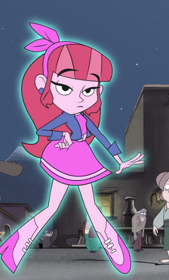 Moviedora is an spoiled noble girl that was friends with a girl named Xochitl and Leo´s Grandma when she was yourger but sadly she and Xochitl got killed by La Nahuala, they become ghosts and now her Mansion got haunted by the villain, after the events of first movie she joins Leo and company in her adventures around Mexico to defeat monsters but for the most part she is useless, makes jokes and references or she is on her own B plot with Don Andres and Alebrije (other members of the team) also she falls in love with Leo´s older brother Nando in the later movies, overall she is fine.