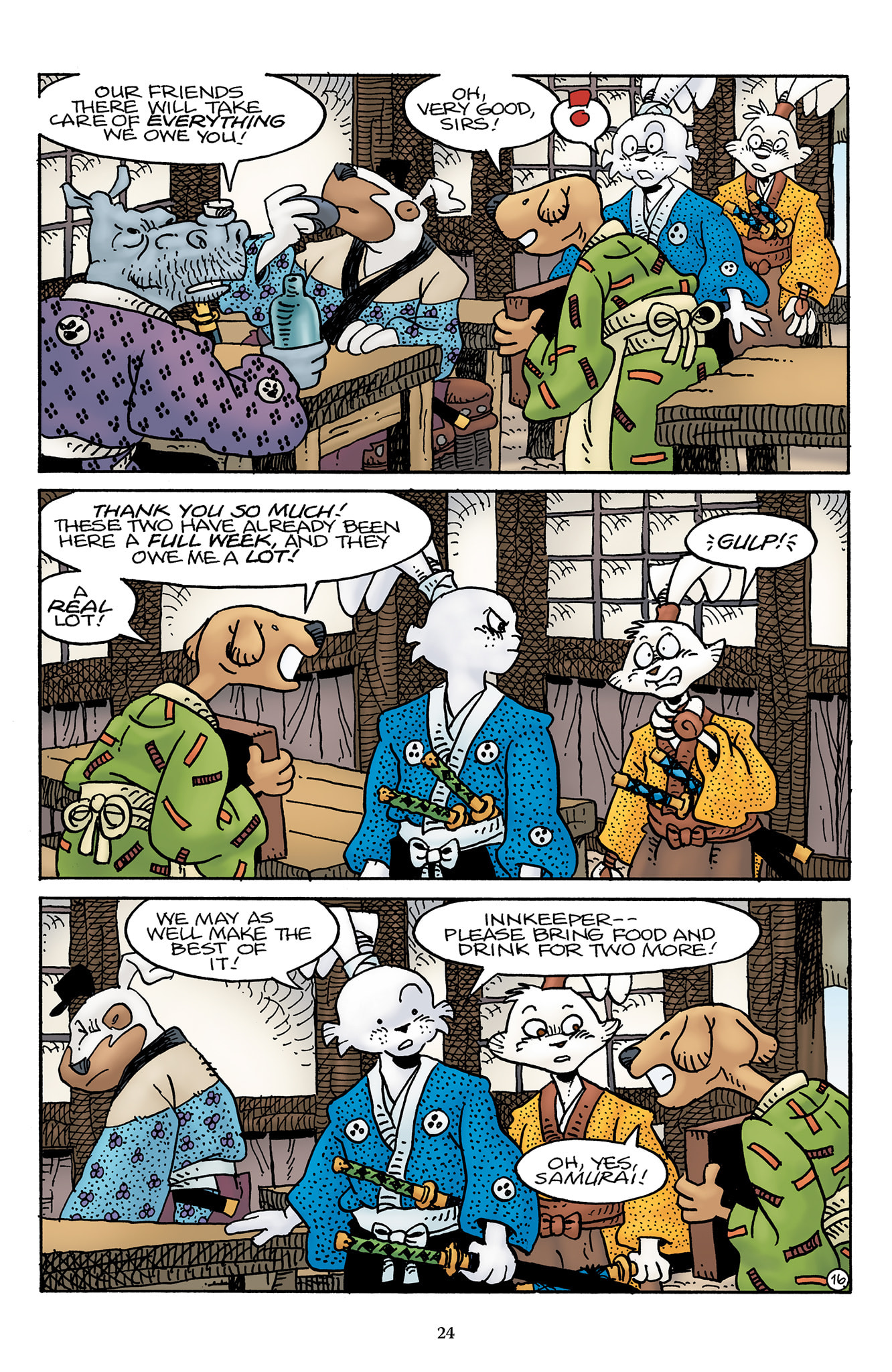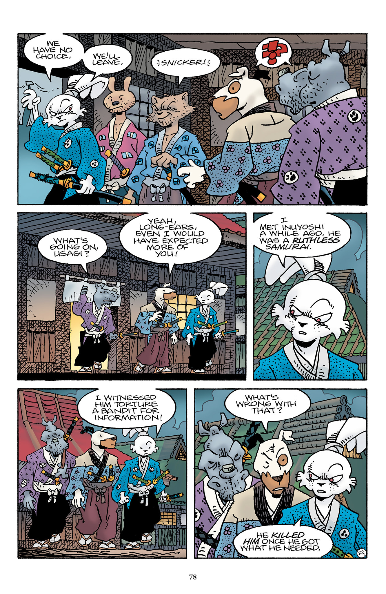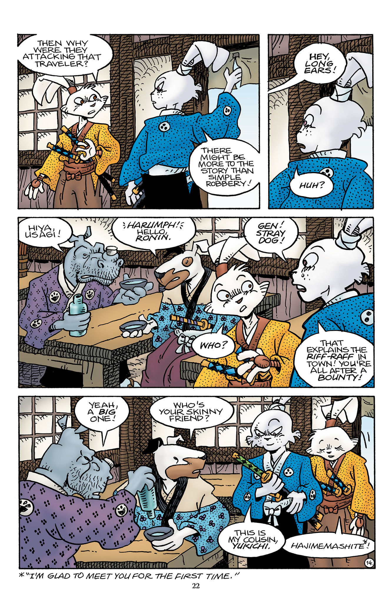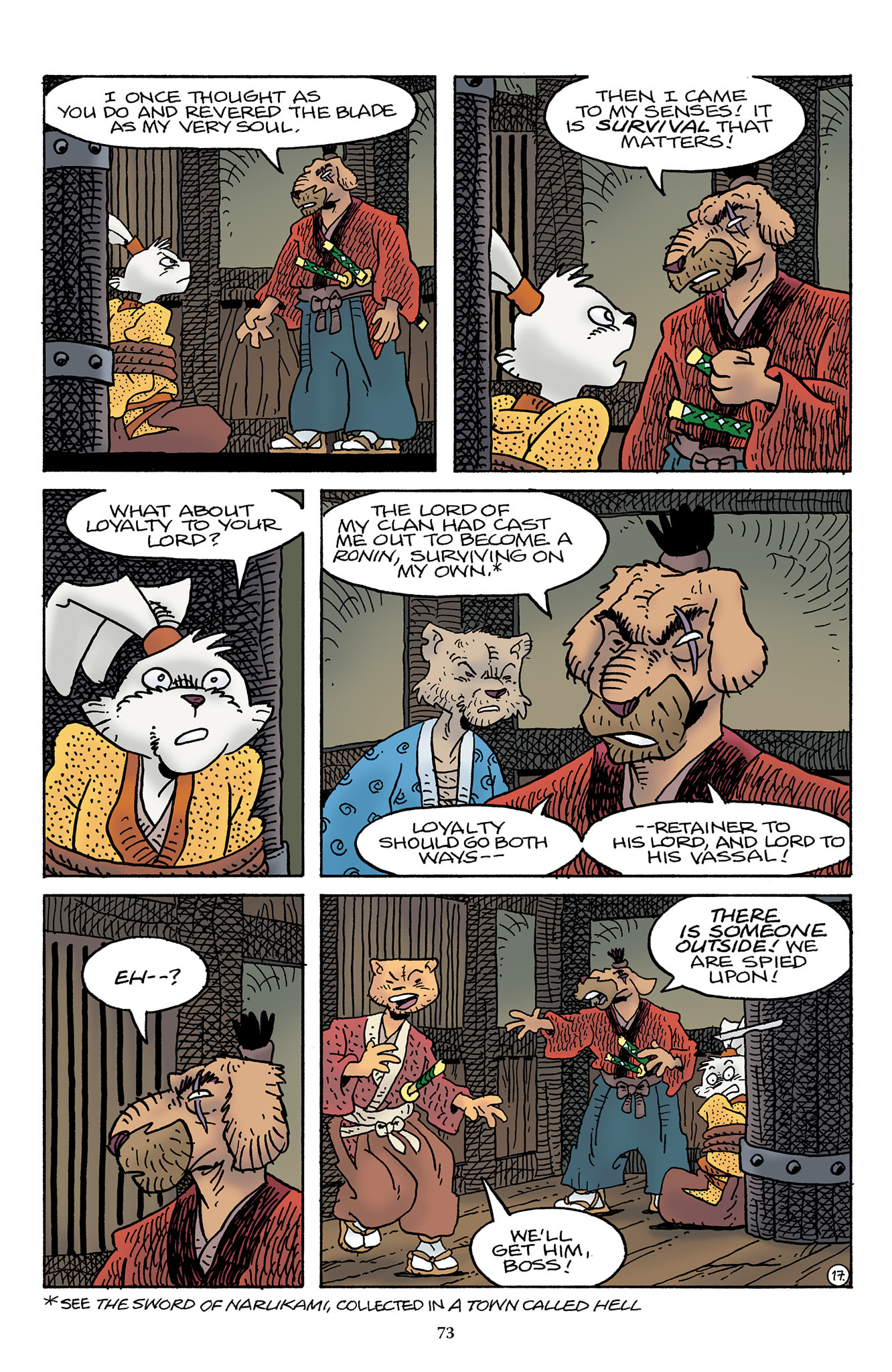 >>153437599>I wish we could have had a page or something of Inukai telling him to keep quiet, or shooting a look to stop him from saying it out loud.Damn, I should have thought of that.t. Stan Sakai