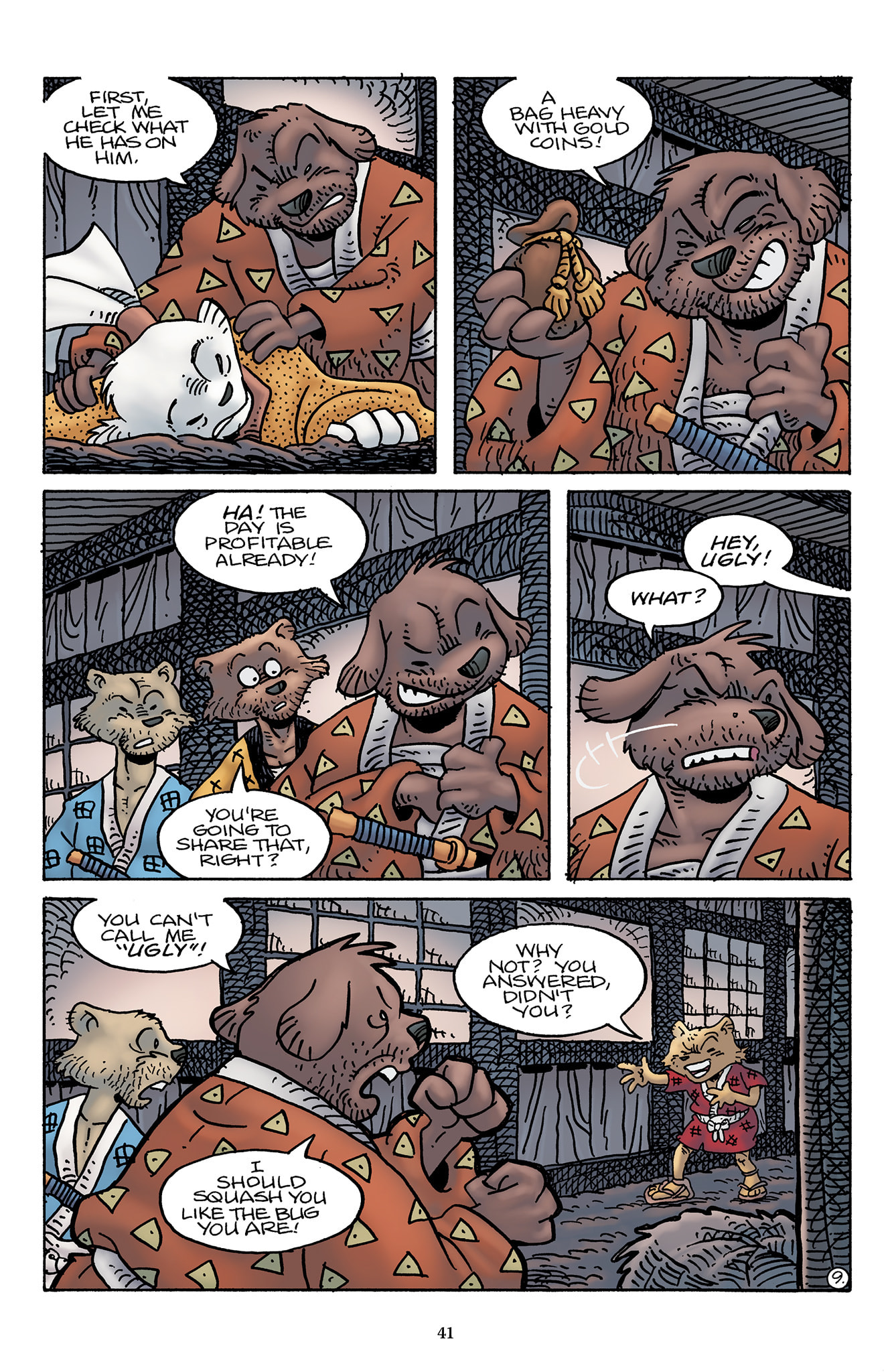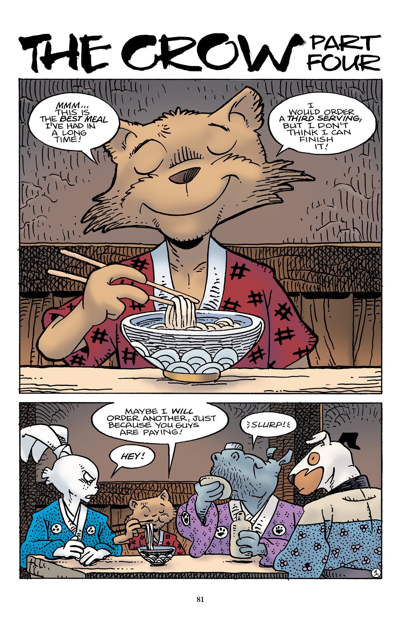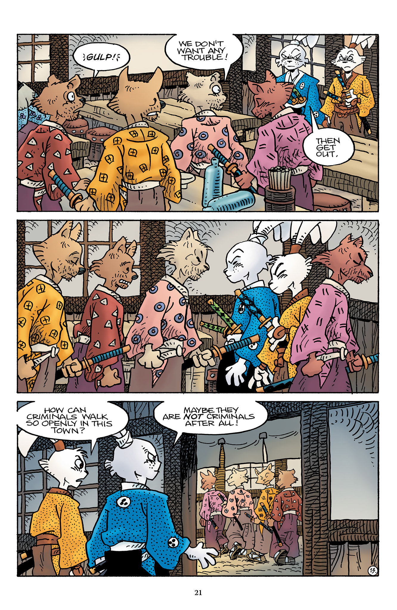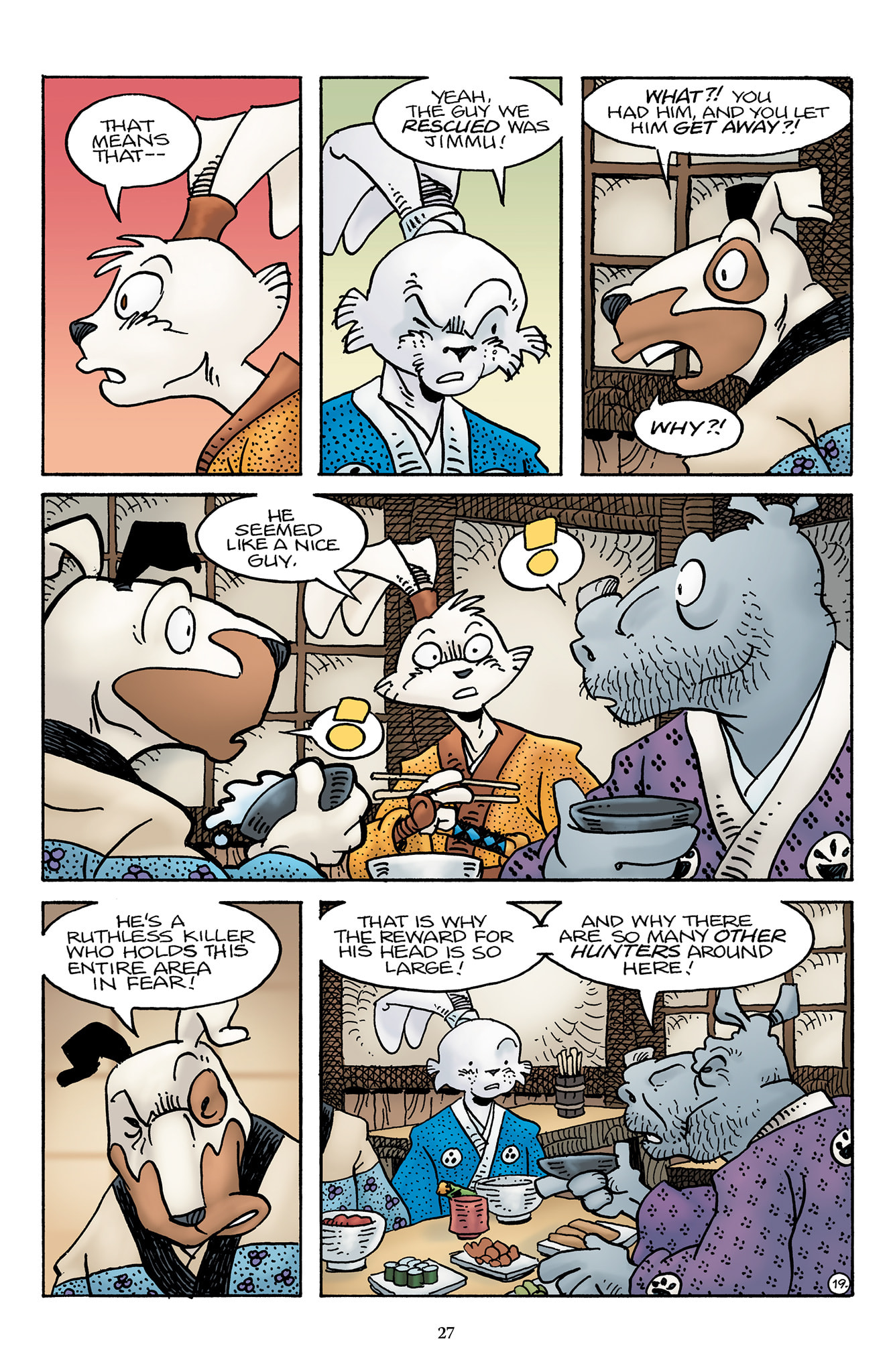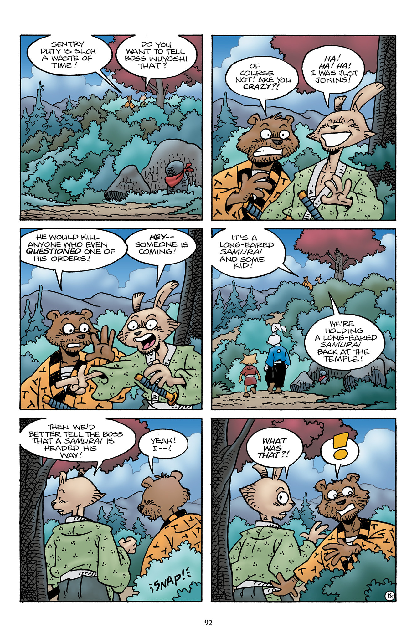 >>153437599>I wish we could have had a page or something of Inukai telling him to keep quiet, or shooting a look to stop him from saying it out loud.Damn, I should have thought of that.t. Stan Sakai