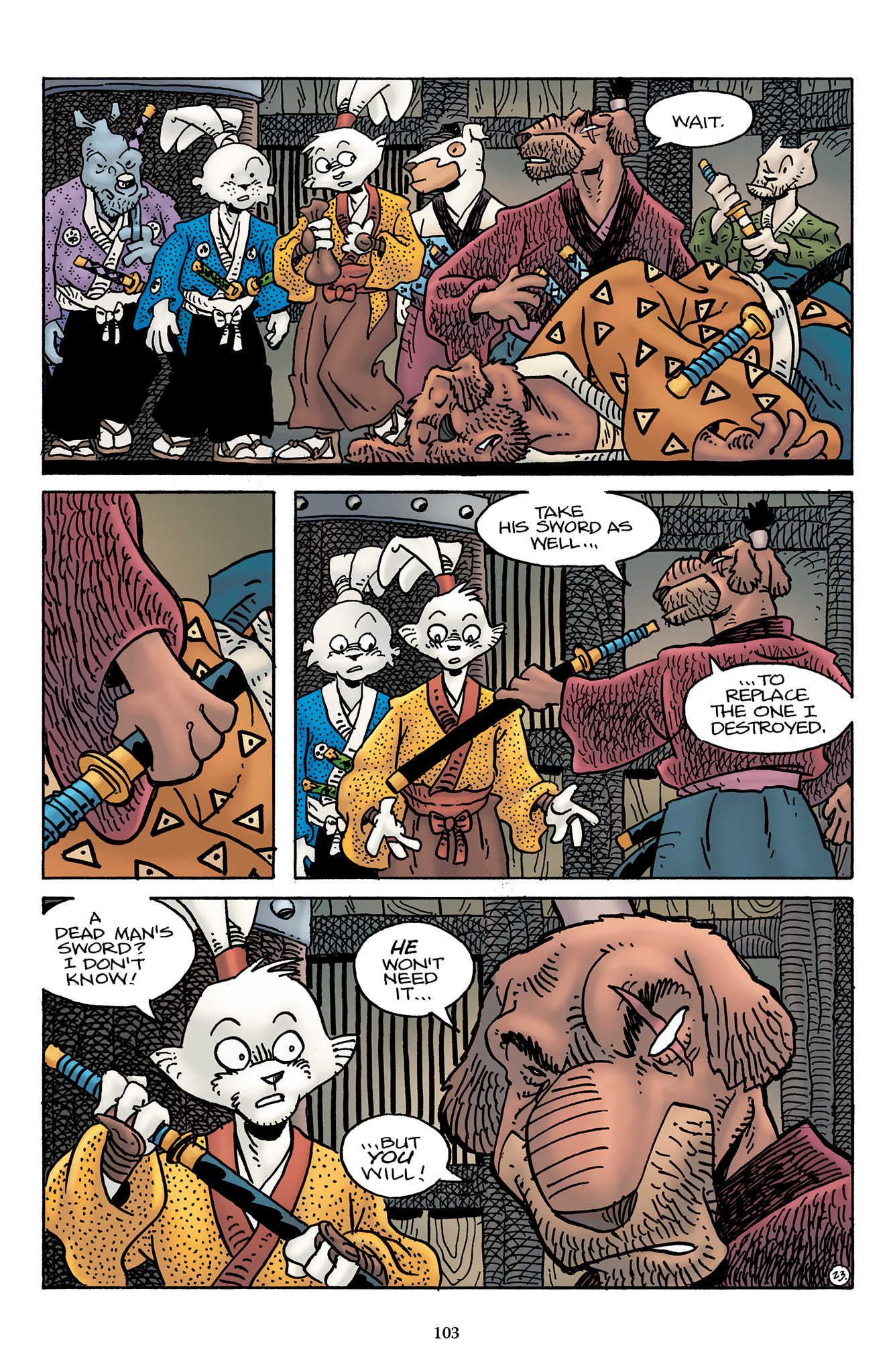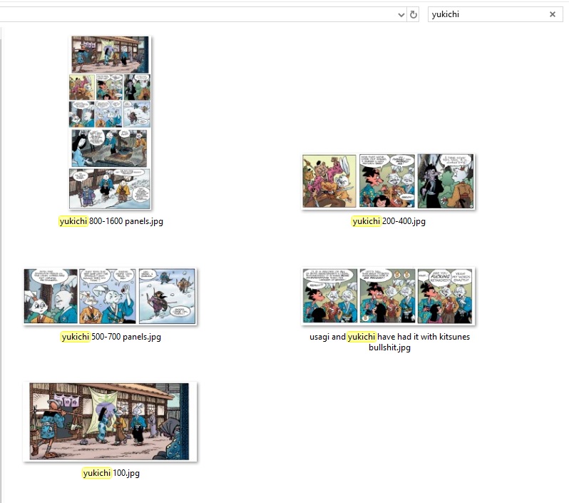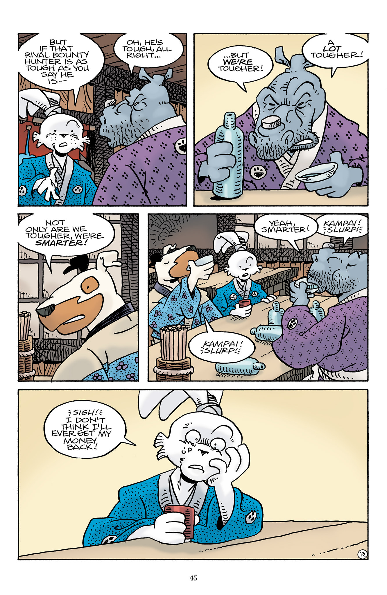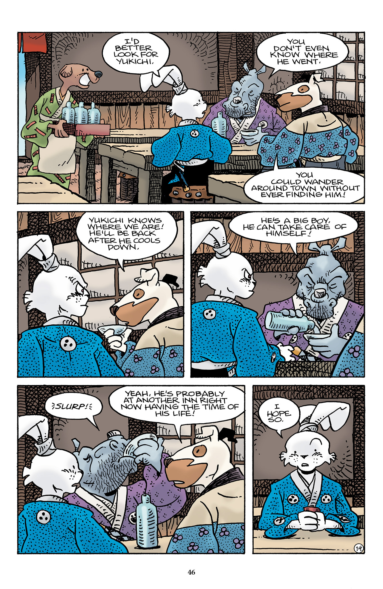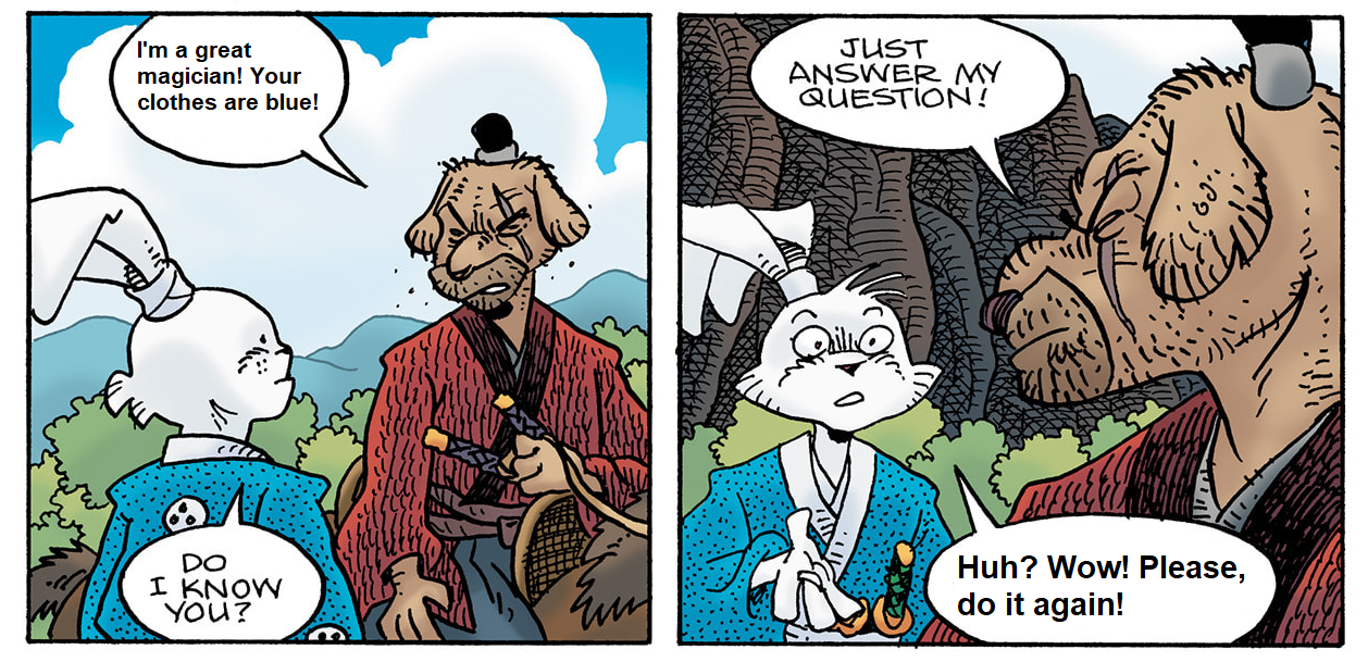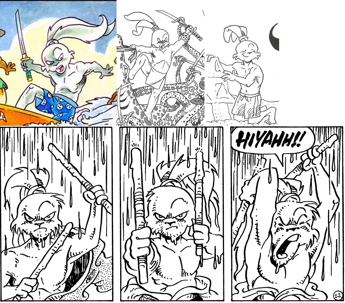 >>153434967This Usagichi is odd because Stan seemingly drew Yukichi instead of Usagi. You can tell because Yukichi is holding his sword in all of the other panels.