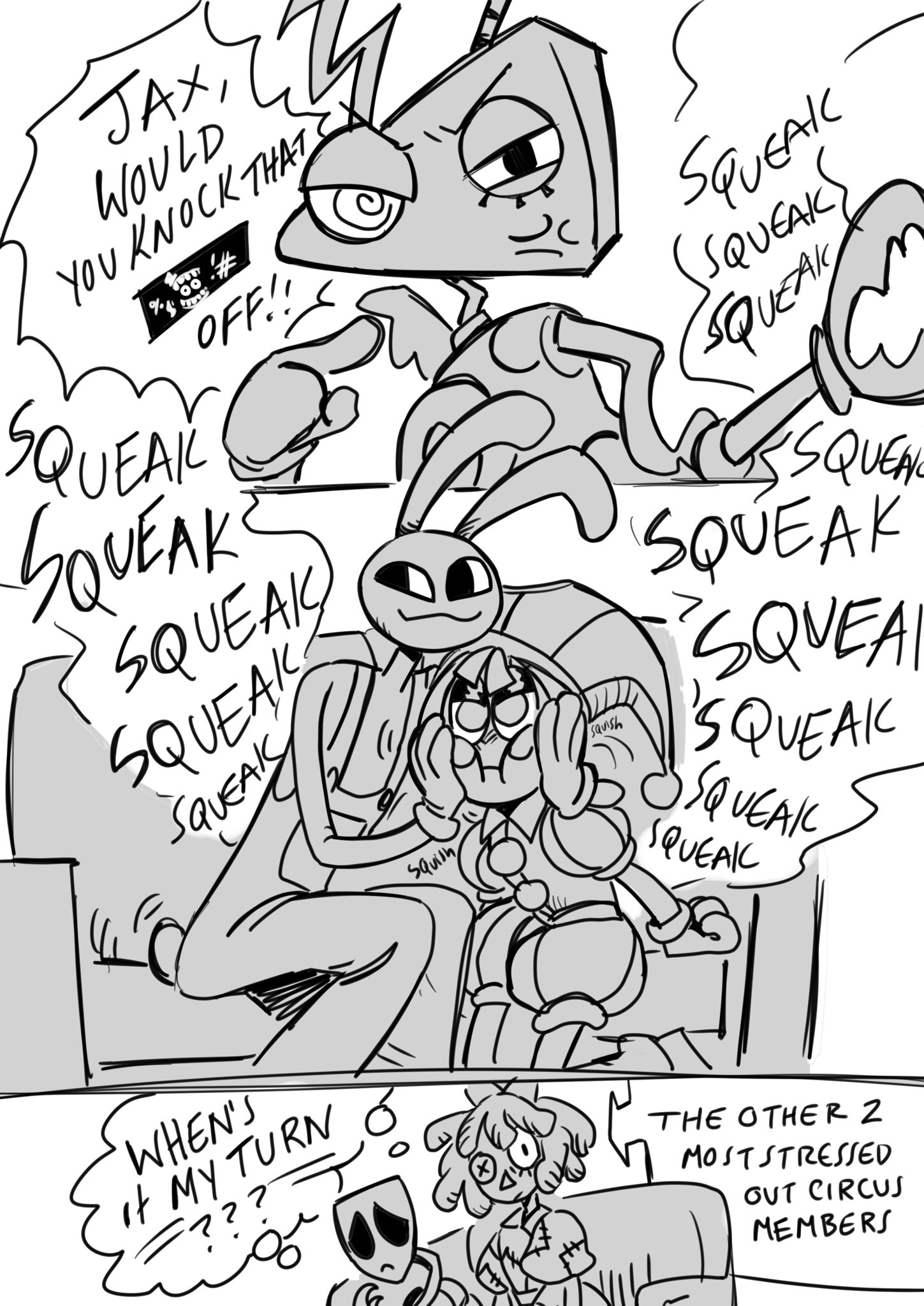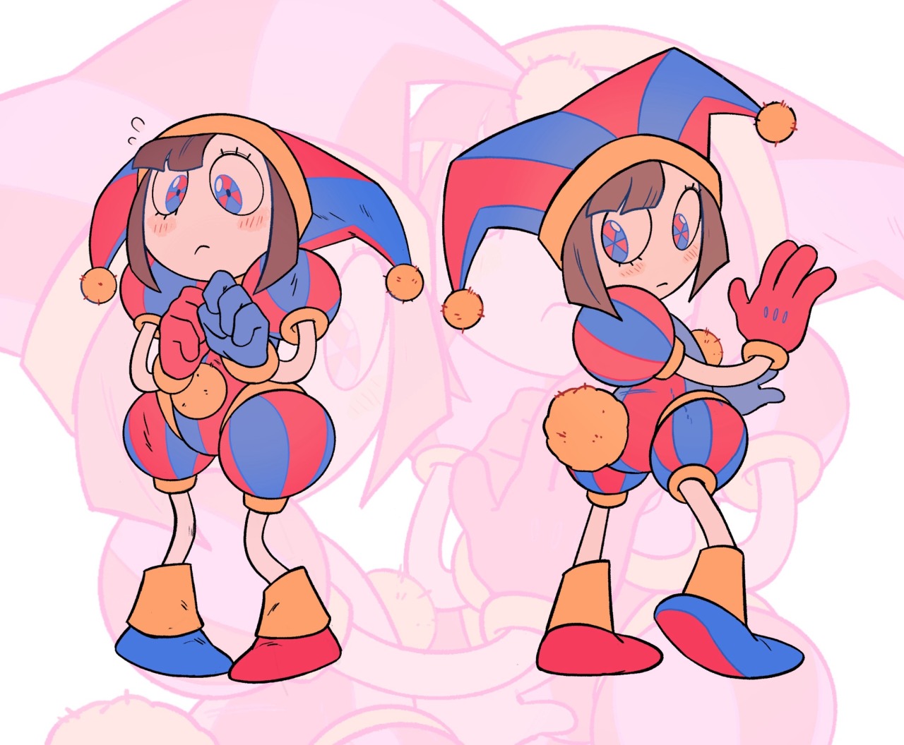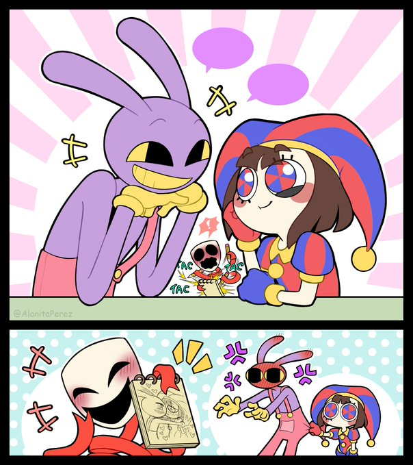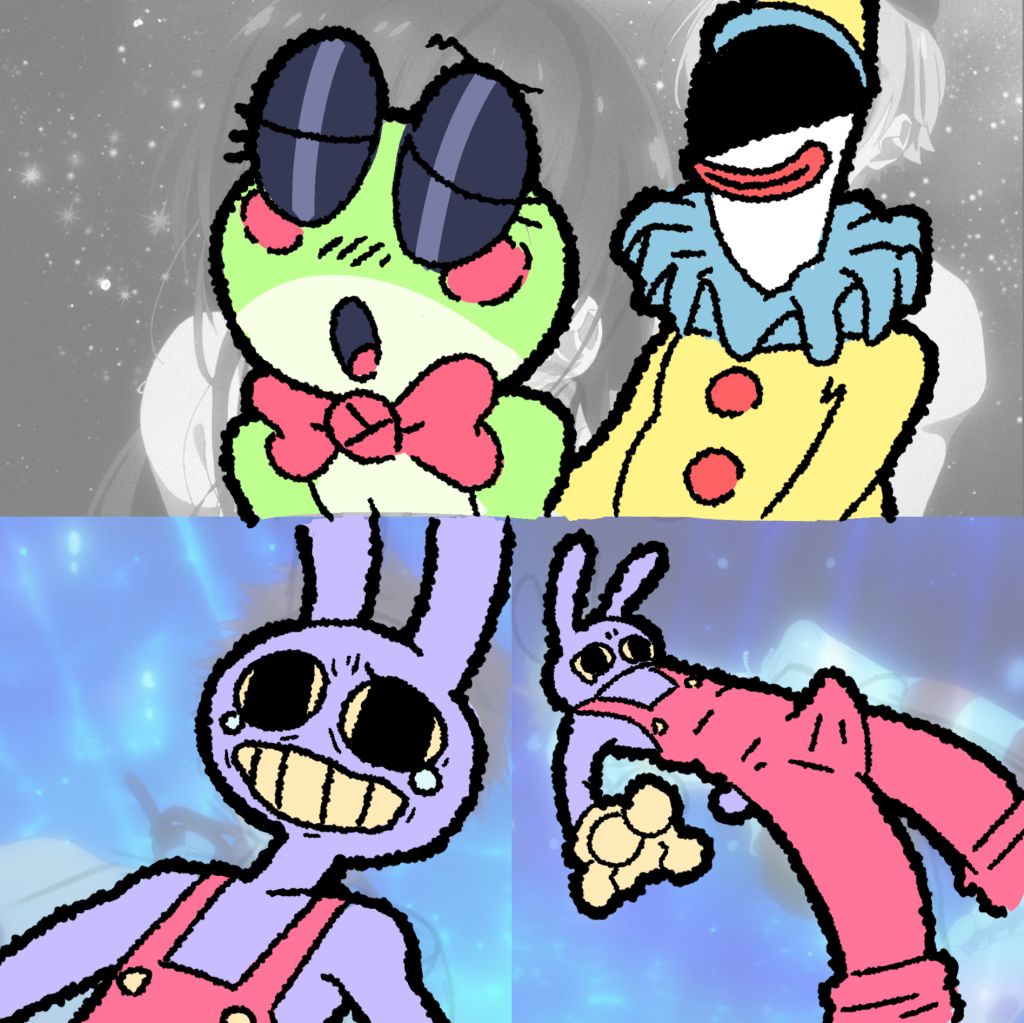 Pomni and Jax surrounded by their 60 tiny bun children
