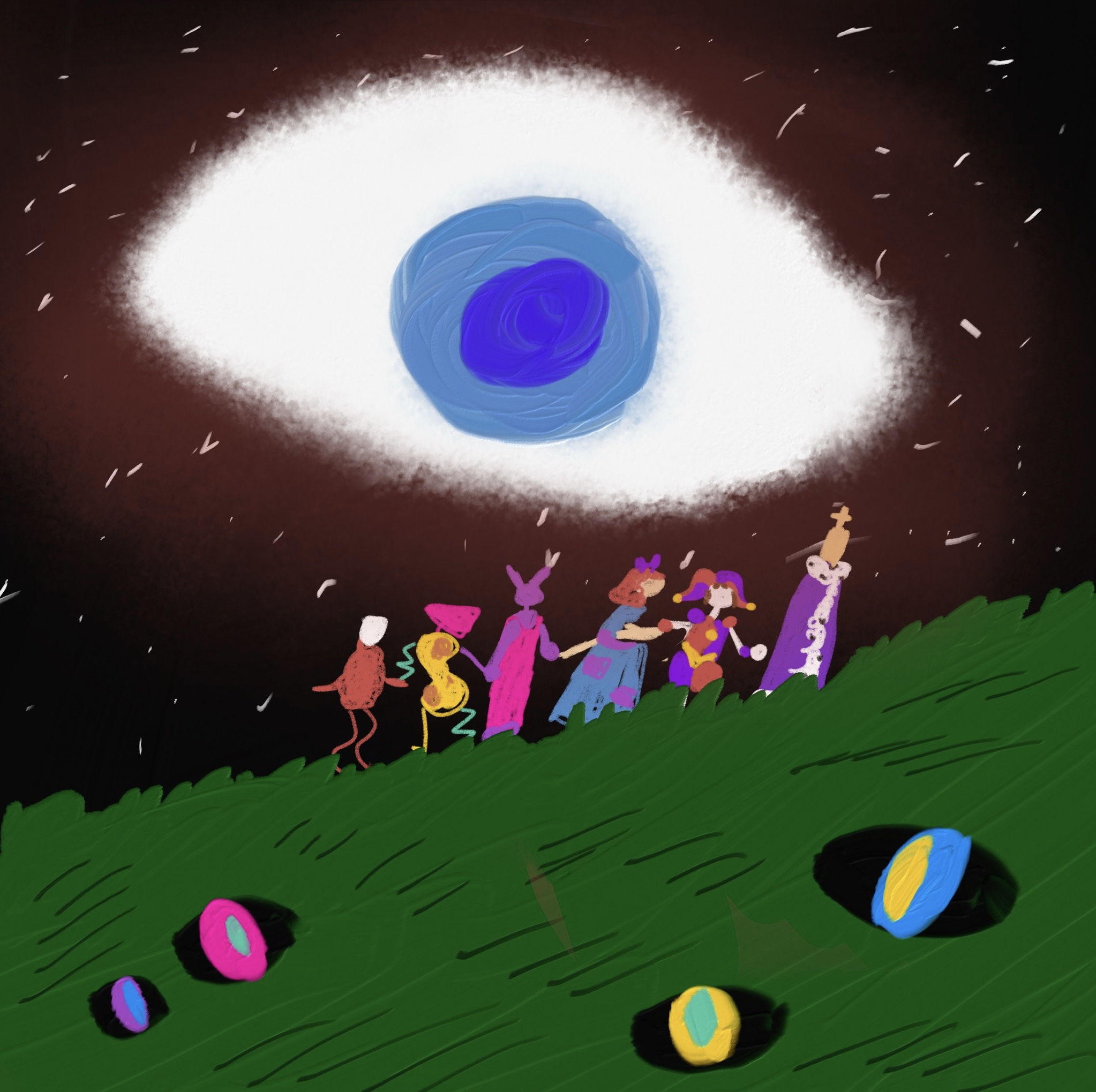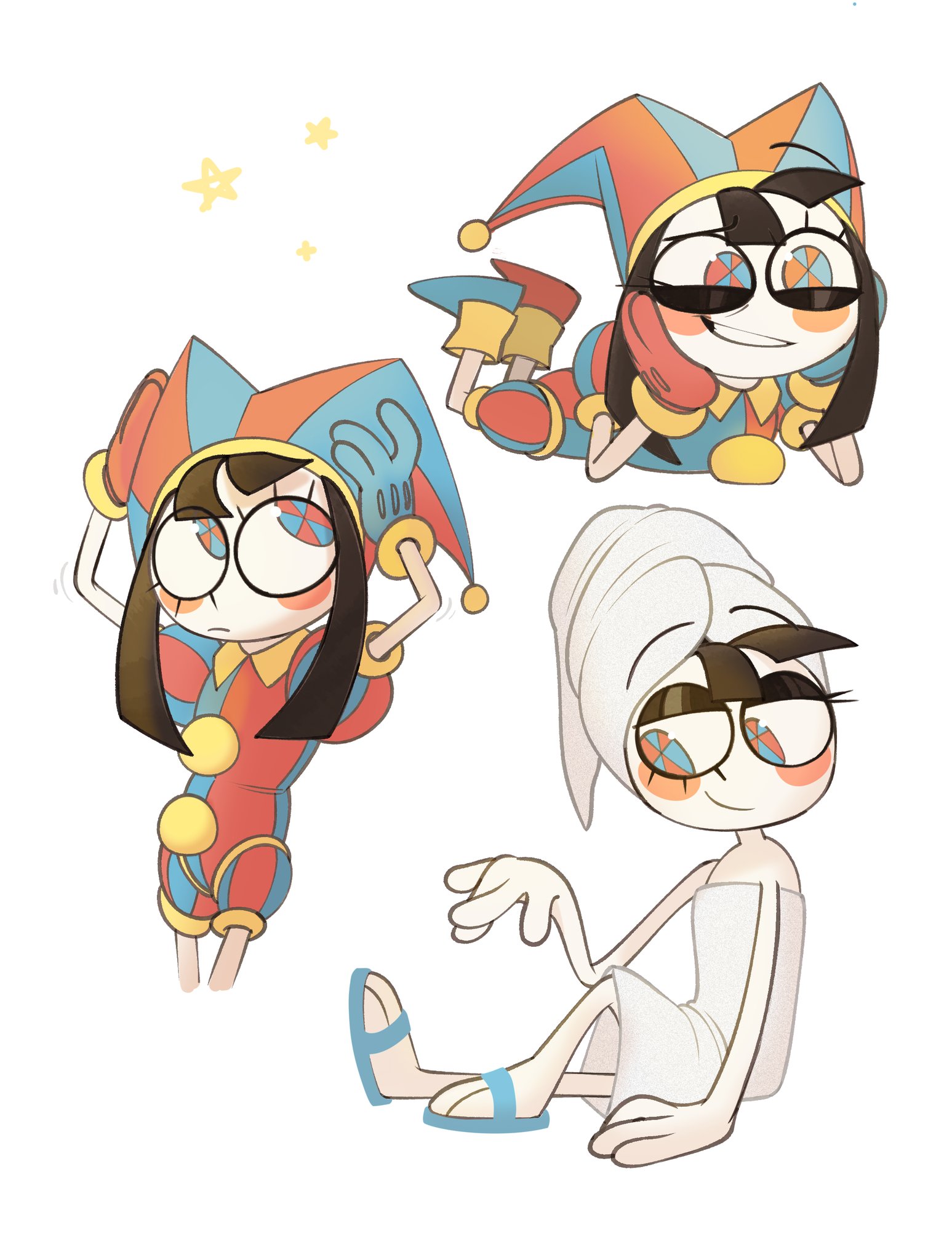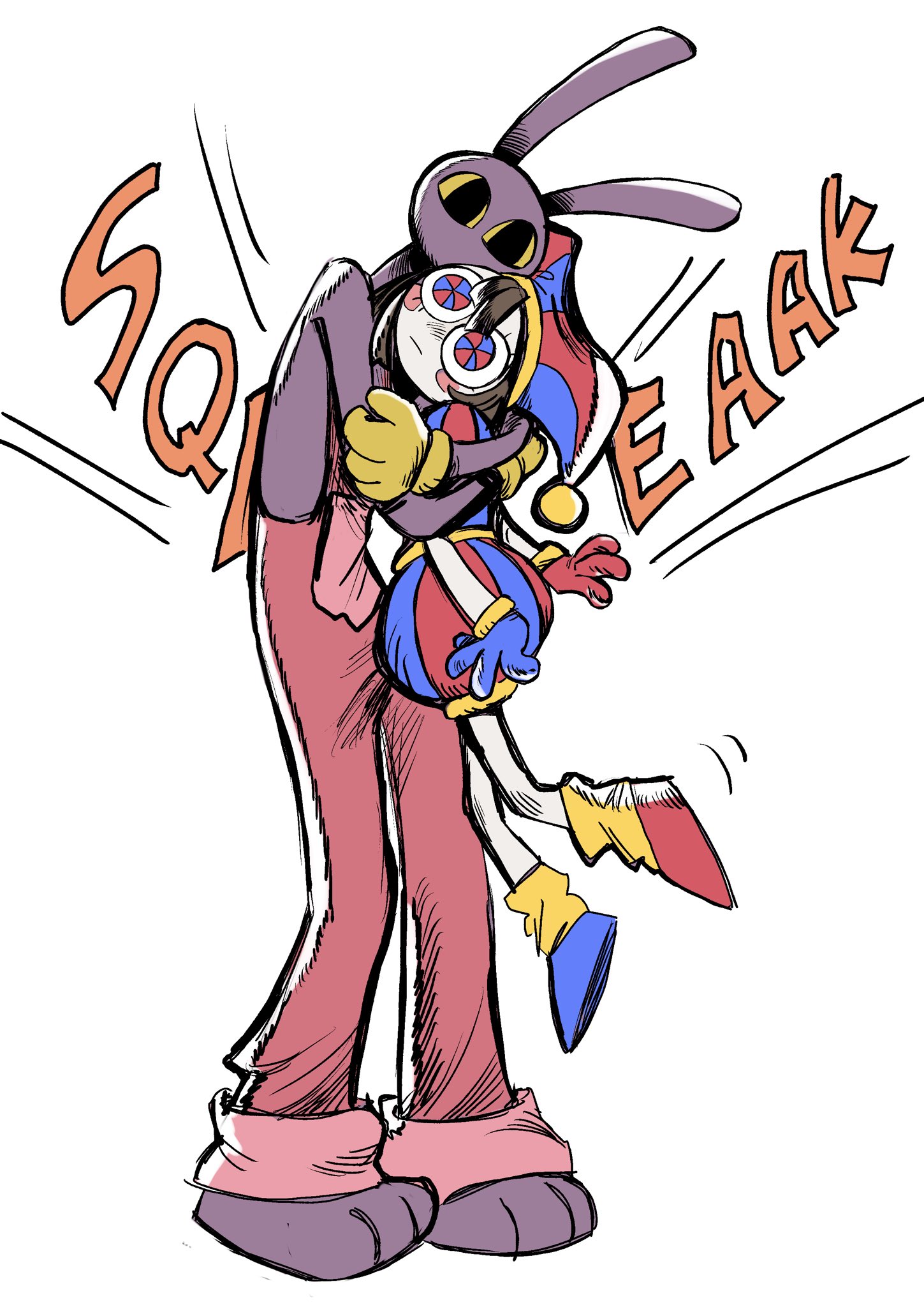 Pomni and Jax surrounded by their 60 tiny bun children
