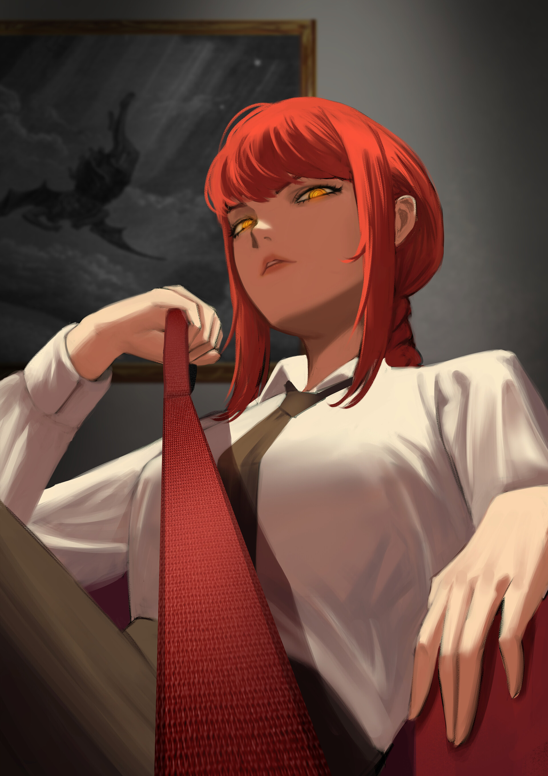 Makima : Bark, pet.Alucard : *Bark*!>Wags buttplug tail