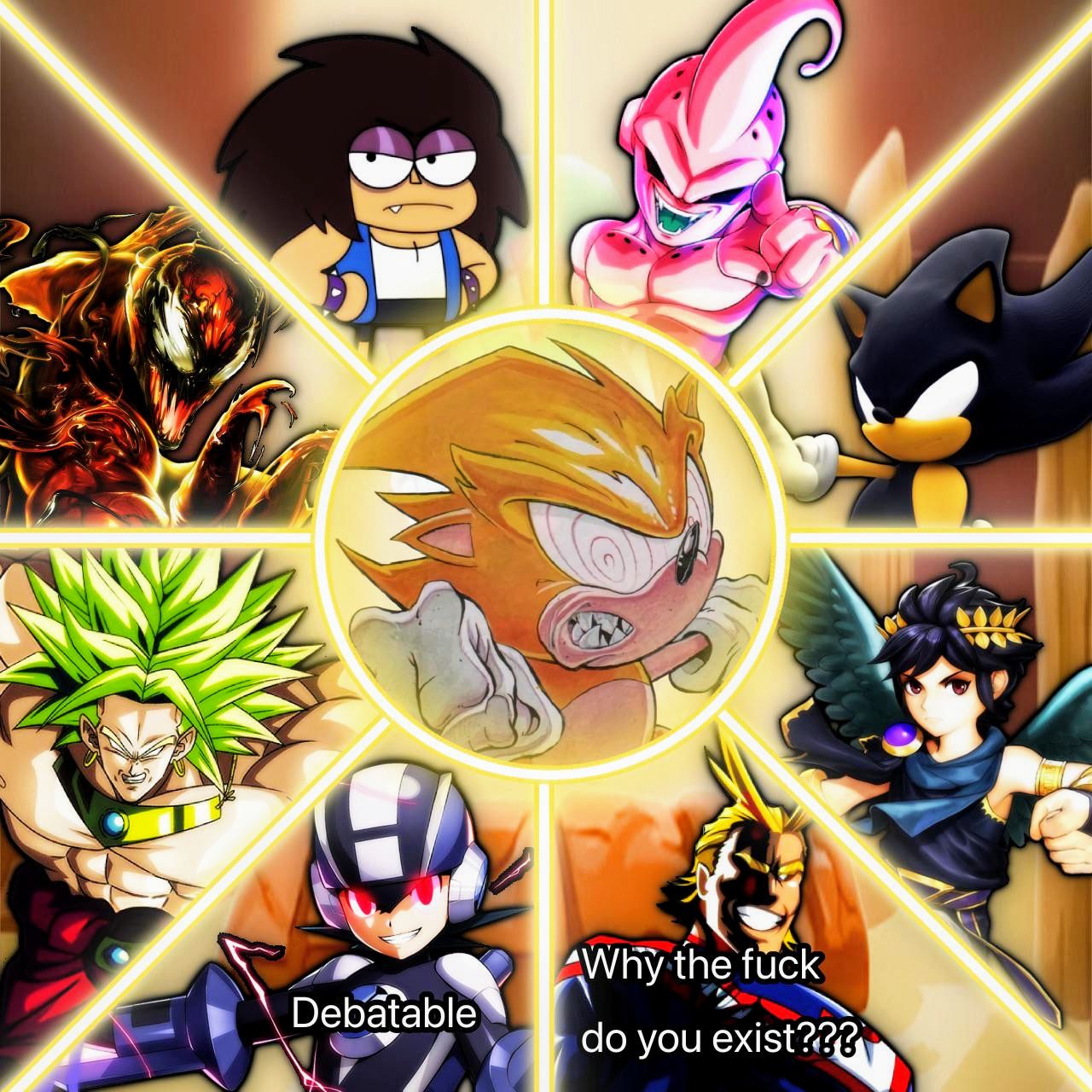 >>153435785Well, any person in their right mind would have the death battle end in a draw, with both either dying, or both running out of energy at the same time.Unfortunately, this is death battle, where they'd somehow wank one character to be way stronger anyways.