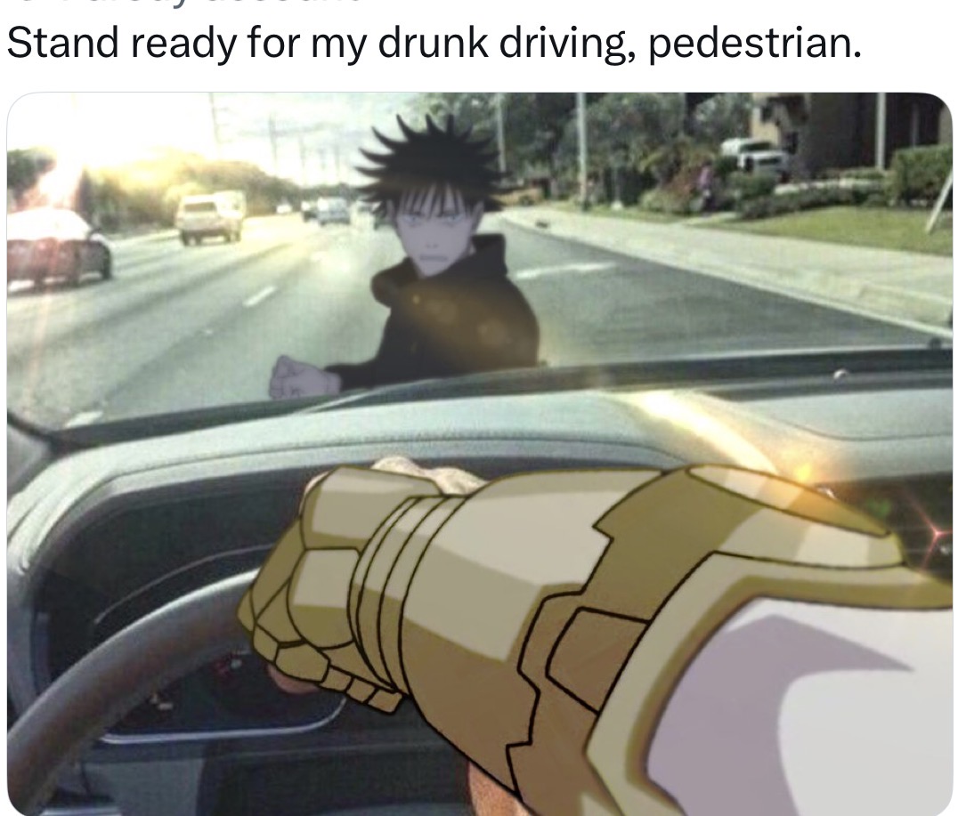>>153437668Megumi? Drunk driving victim.Also, yeah, it's funny as fuck how cucked Megumi got throughout JJK. Even Nobara, who was COMA'D for fucking like 70% of the manga didn't get cucked as hard.