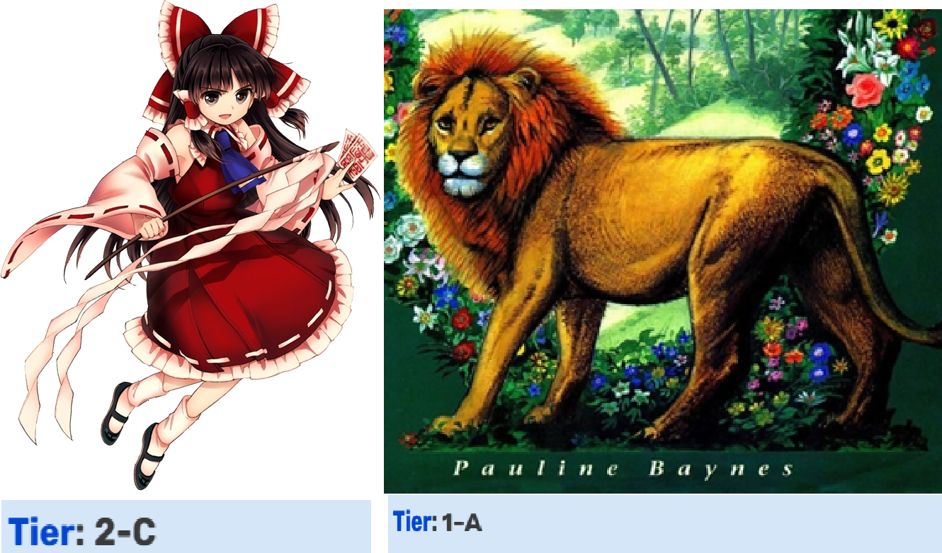 >>153437616>Tier: Low 2-C | At least Low 2-C, possibly higher; 2-A with absorption | Low 1-C, possibly 1-A | Low 1-C, possibly 1-A | Low 1-C, possibly 1-AWHAT THE FUCK