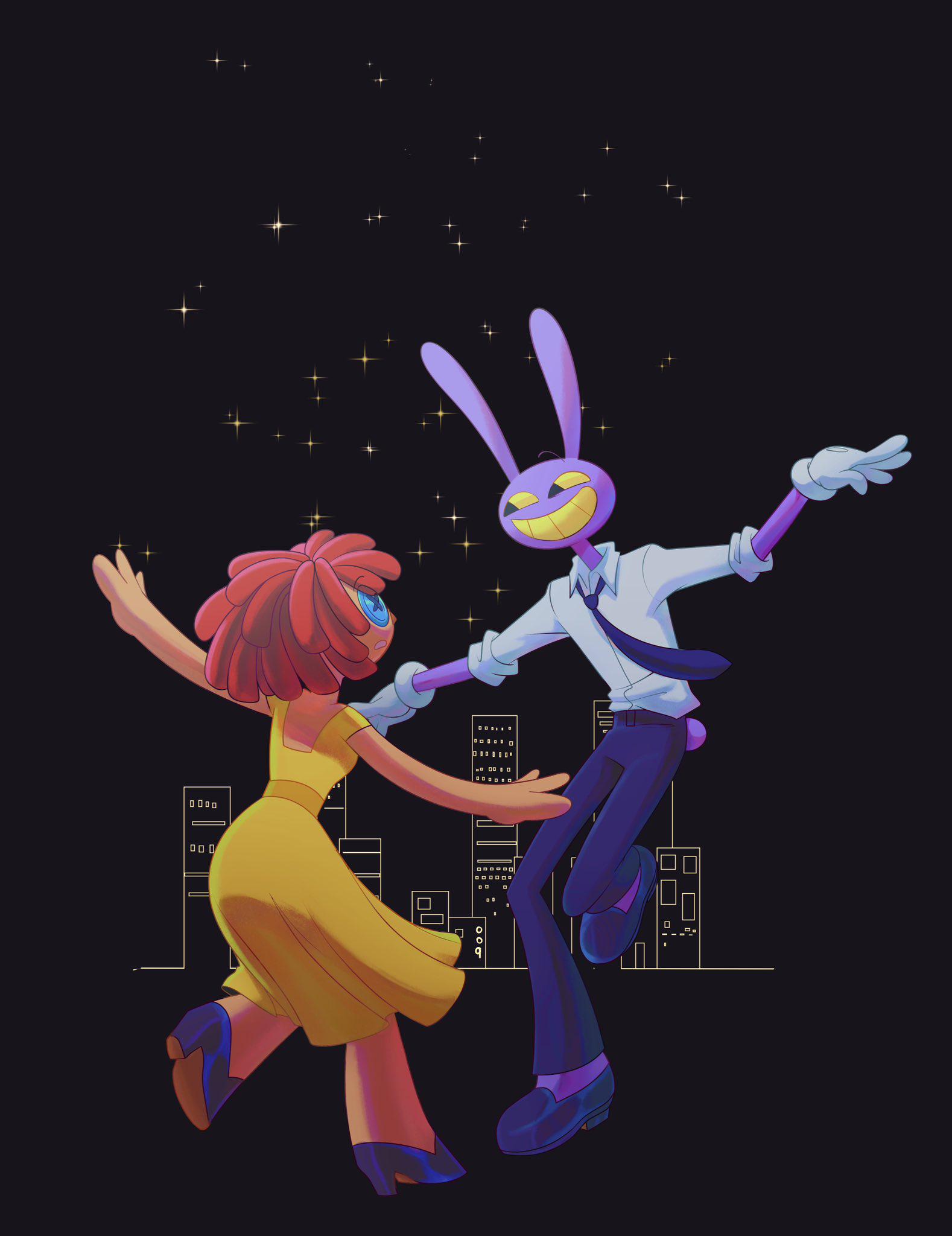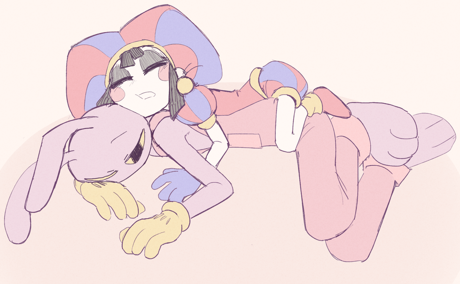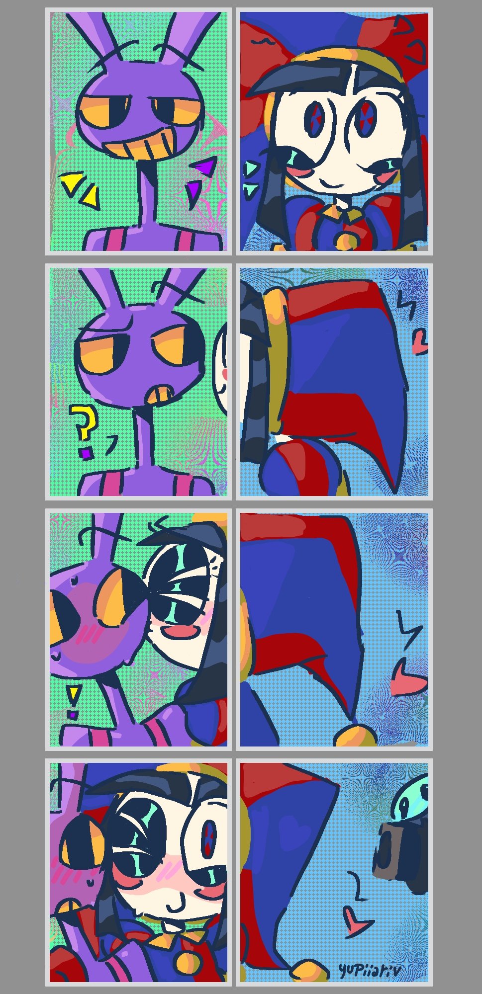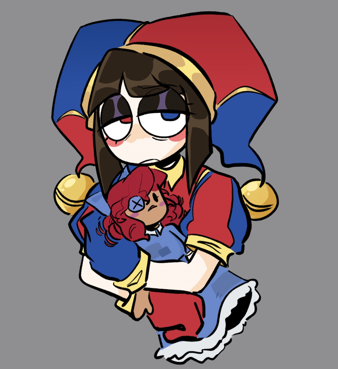 kinda related but I really like the way Pomni is red and blue while Gummigoo is yellow and green.Together they complete thefour unique hues and that's really cute to me