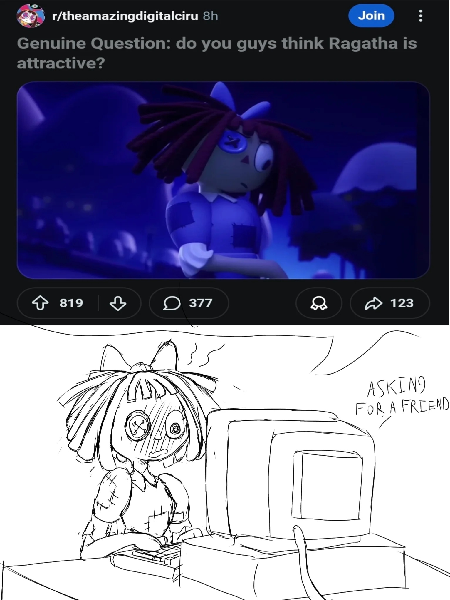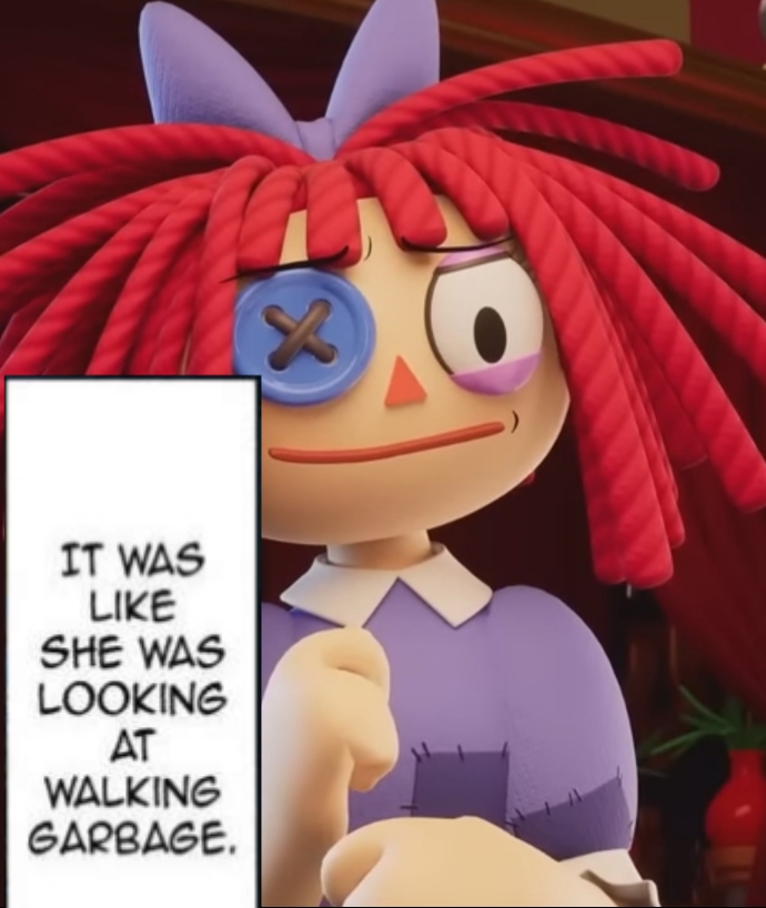>>153444624>>153444629Sorry, Ragatha is a background character. She already used up all her "important to the plot" scenes. It's the Jax and Pomni show from here on out.