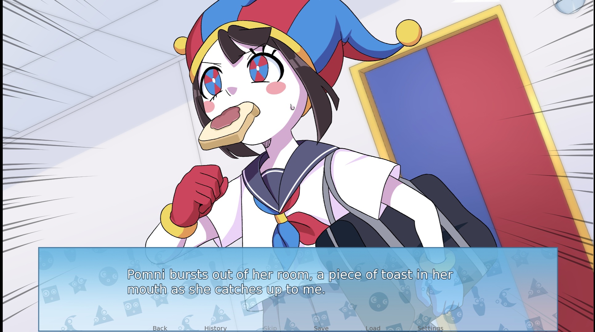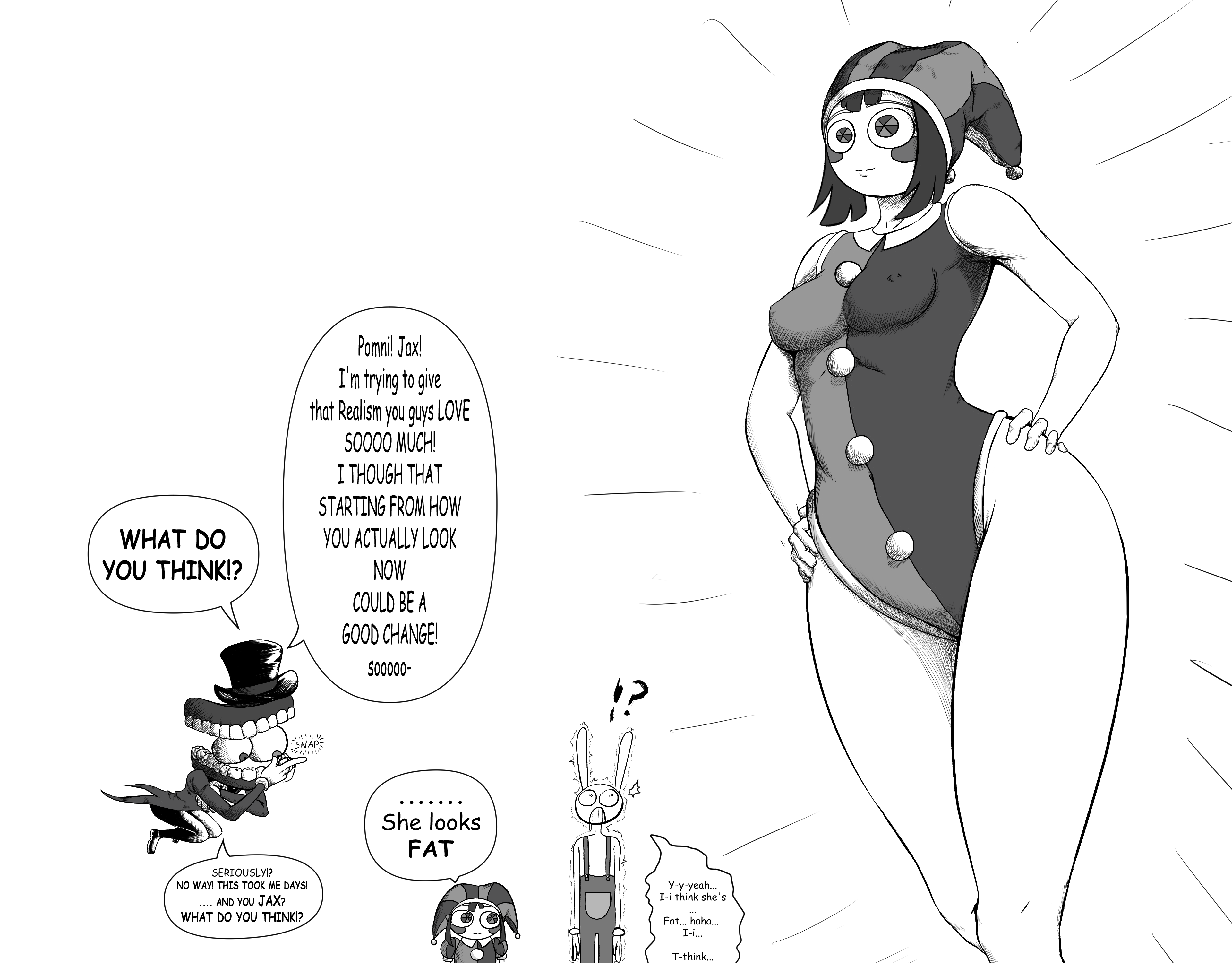 If Pomni eats enough bugers, maybe her body will become big enough to be in proportion with her head