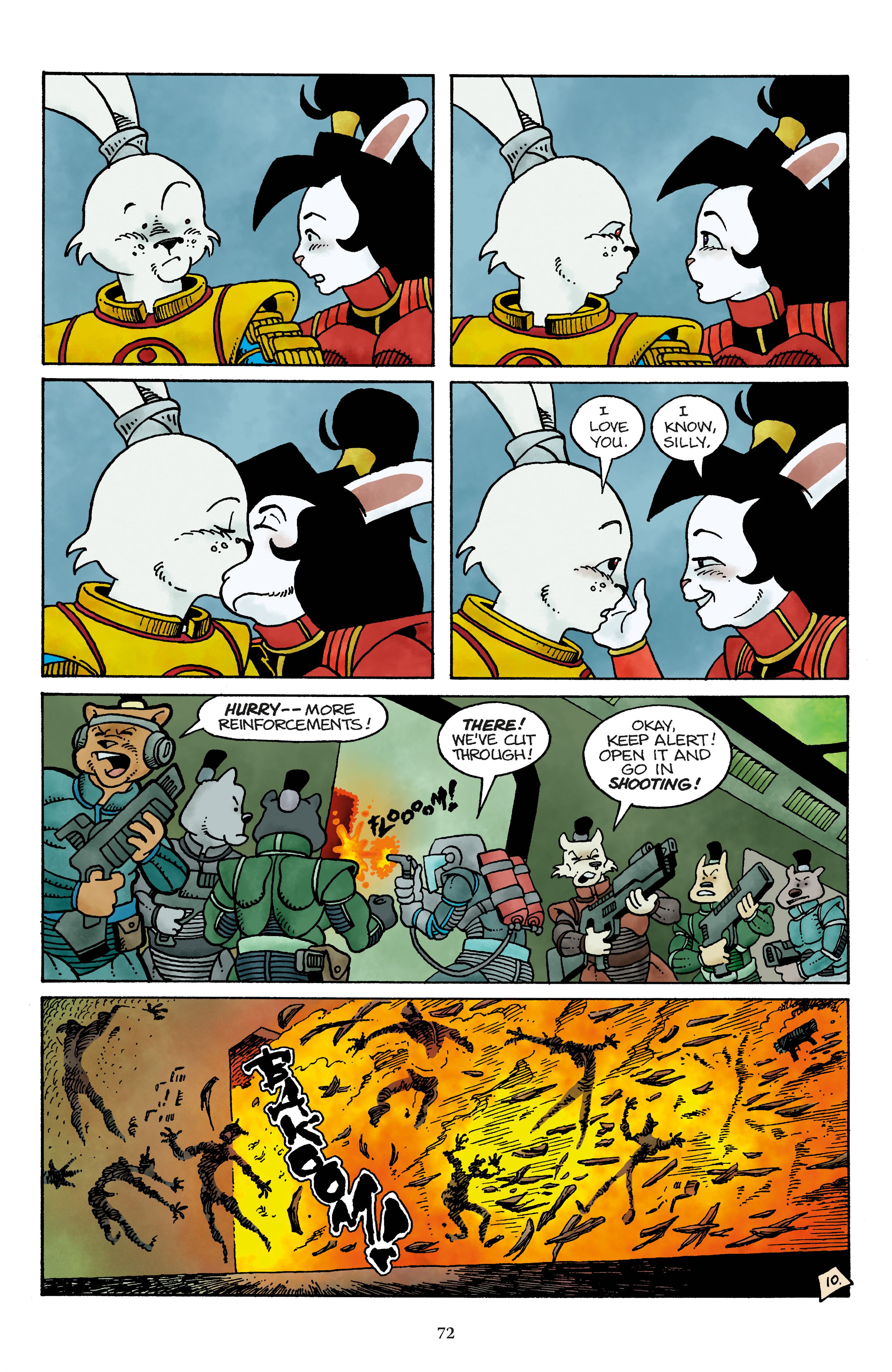 Space Usagi was originally published starting in 1998, and recently gained a color edition as well. it's significantly better than before, and some anons wanted to see it, while others would prefer b&w. since only two of three stories are in color, I'll think having this first part in color and the next in b&w is sensible. please direct any complains to lord enma's office, located off the lake of fire past the sanzu river. that said, give me a minute because I forgot to resize the files for posting.
