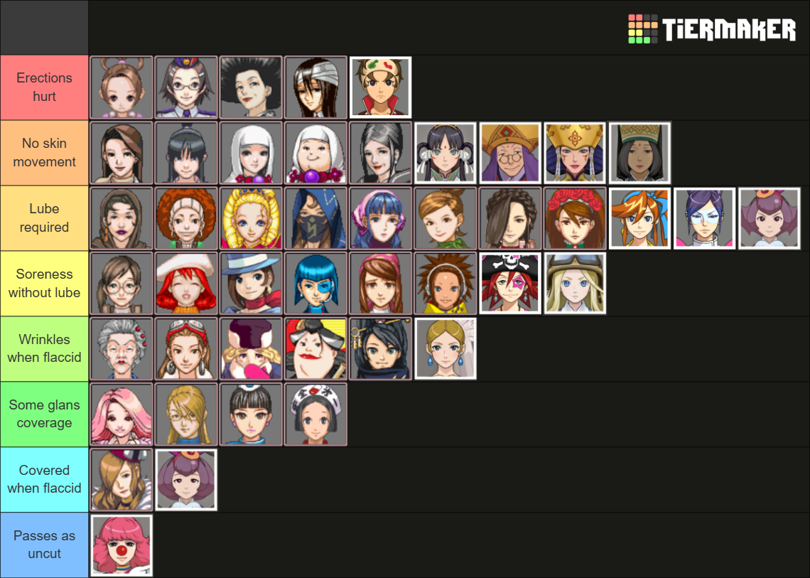 Ace Attorney women circumcision tightness tierlist