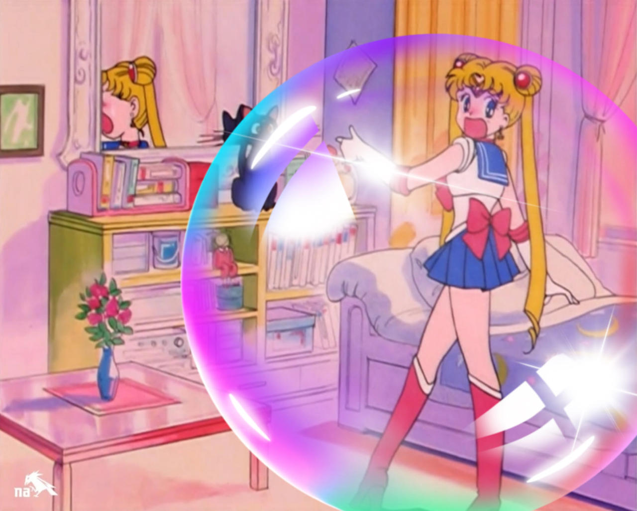 another quick one: bubble encasement (mostly referred to inside a bubble) basically people inside of massive bubbles either trapped inside or using it to travel or go under-water, sometimes the bubble is plastic (think a boy and his bubble from that old story) but other times it's a traditional bubble usually made with magic or fantastical science, the bubble is typically more durable "rubber like" balloons but not actually rubber or they are very easily popped, sometimes the bubble is made via bubble wand (like those ones you can get for parties rather then magic) or bubble machines that dispense bubbles, it's not to be confused with people becoming bubbles/spheres/blue berries.oh speaking of bubbles, bubble censorship is also a thing (using soapy bubbles as a means to cover nudity)