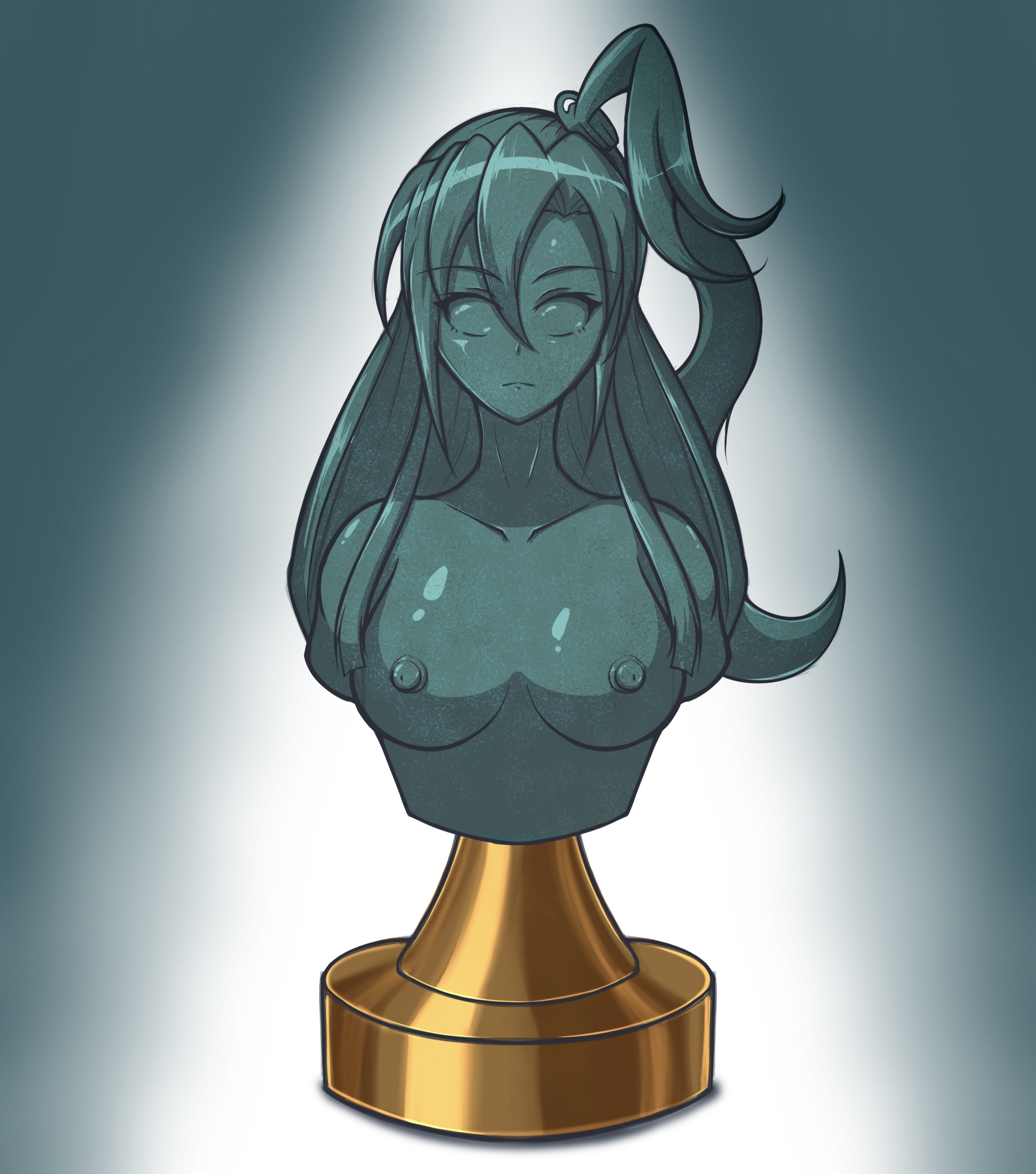 I much prefer a private affair. Petrification is inherently isolating; even a statue in a gallery can't talk or interact with her fellow rocks. It's more on-brand for the kink for her to be trapped alone.