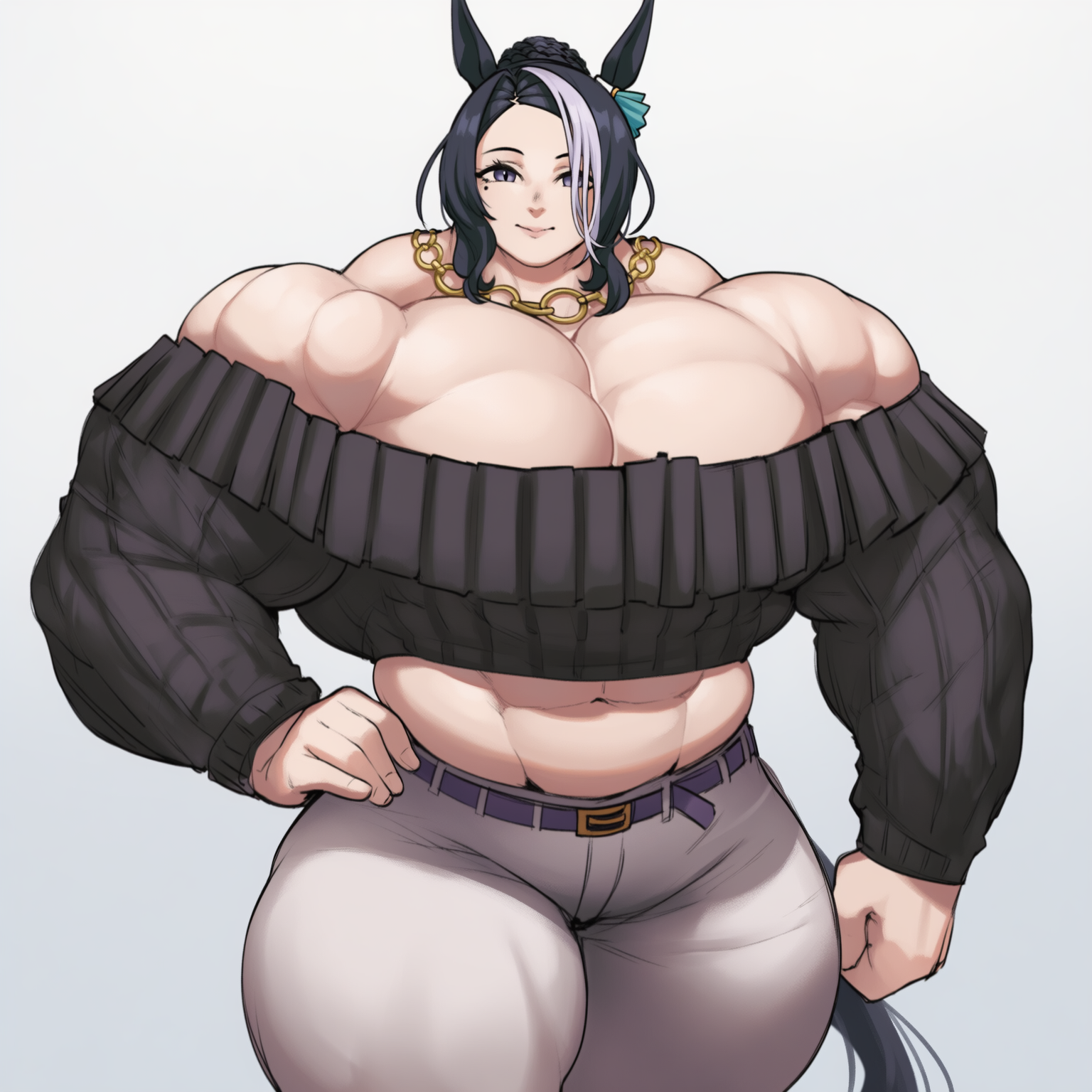 >>11447293my personal favorite part is getting the waist like a powerlifter'si love that it represents a body built to maximize physical strength over aestheticsbut also i genuinely think it looks sexier like this, especially how the waist flares out from under the girl's shirt or brathe core muscles looks more solid (and more grabbable), and it makes the overall silhouette more imposing