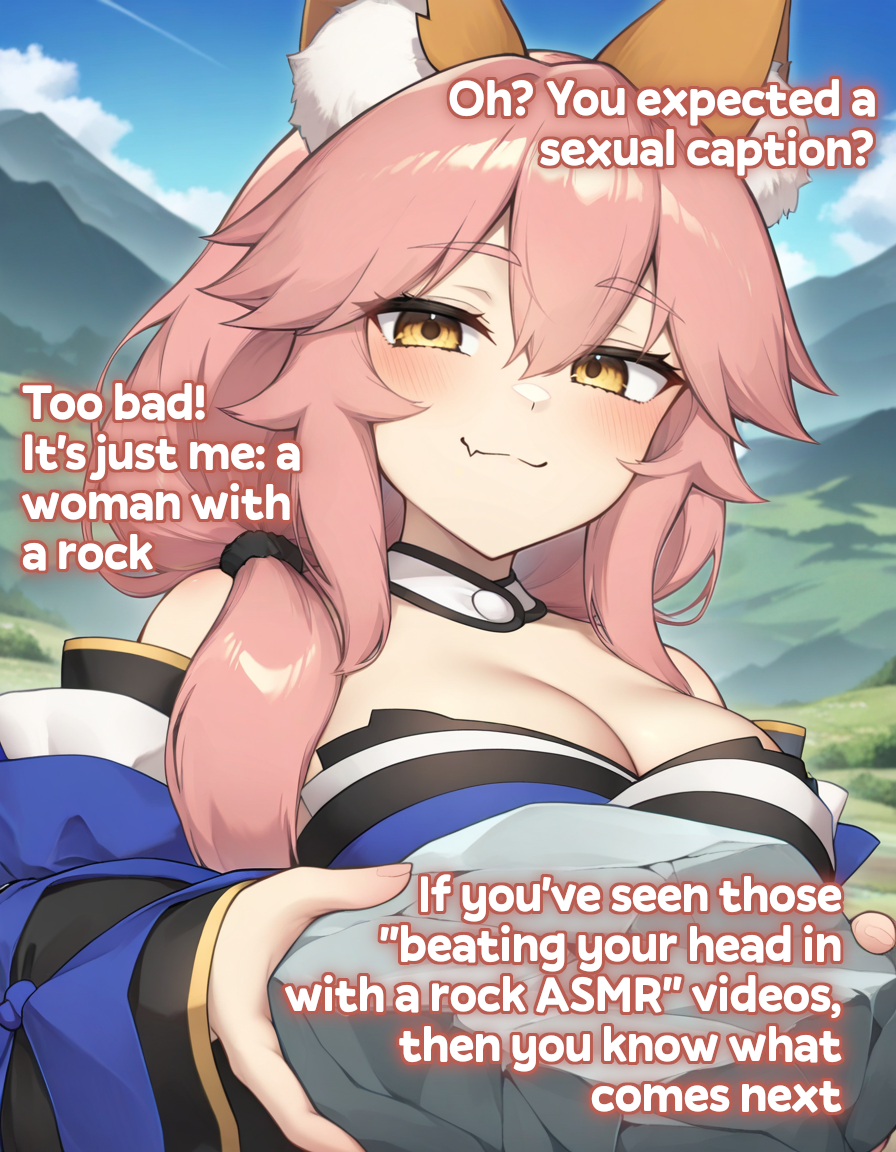 irony/ fourth wall break warning. original from >>>/trash/slop:https://desuarchive.org/trash/thread/74000555/#7400294750 font size (nonstandard for me, due to caption brevity)110% "gaussian blur" "stroke" (outline)well, i made an ironic caption conveying my lack of unprovoked inspiration, but it was forced: i realized as i started on it that i can't honestly joke about it; i'm highkey sad that there is no difference between me dropping captions regularly or quitting entirely. it's been a week to the day since i floated quitting caption-making >>11432882, and even if no one has any requests despite all my begging for them, i can't even get a "hey man, i looked forward to your captions. sad to see you quit"? at this point i'd just let the thread fall off the board to hide the shame that was my caption-making, but other content creators have posted their works too, so i can't be so selfish. but if we even reach a new thread, it will just be a bumpfest (hopefully deleted bumps from the 24/7 inactivity), since no one (no one) has any requests, not even gesturing to specific subject matter they liked and would like more of, because there is no audience. not for me, anywayi'll stop putting on such an embarrassing display in begging for requests and p. much disappear into the shadows i guess, but i still have yet to make the amended video example of the "Boundfat's gaussian blur/glow stroke (outline) text tutorial" in the OP i elaborated on my being able to make in my last (unironic) edit here >>11425968, so i will drop that and post-delete bump the thread, but otherwise stop posting to it, i guess, since idk how to even beg for a request in a novel way anymorealso i figured the smegma genner i was meant to collab with who went AWOL two (2) weeks ago >>11429012 must've felt abused by my constantly flip-flopping between the expressions being okay, only for me to come back and say they were uncaptionable and ask for different in the end. i am sorry. i didn't mean to