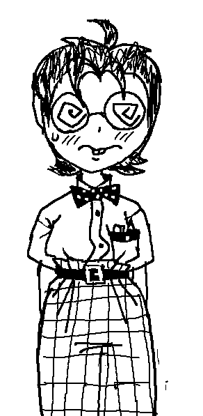 stereotypical nerd boy who wears oversized high-waisted triple-pleated plaid pants to hide his pudgy feminine ass, with blousy button-down shirts weighed down with a pocket protector to hide his budding estrogenized tits