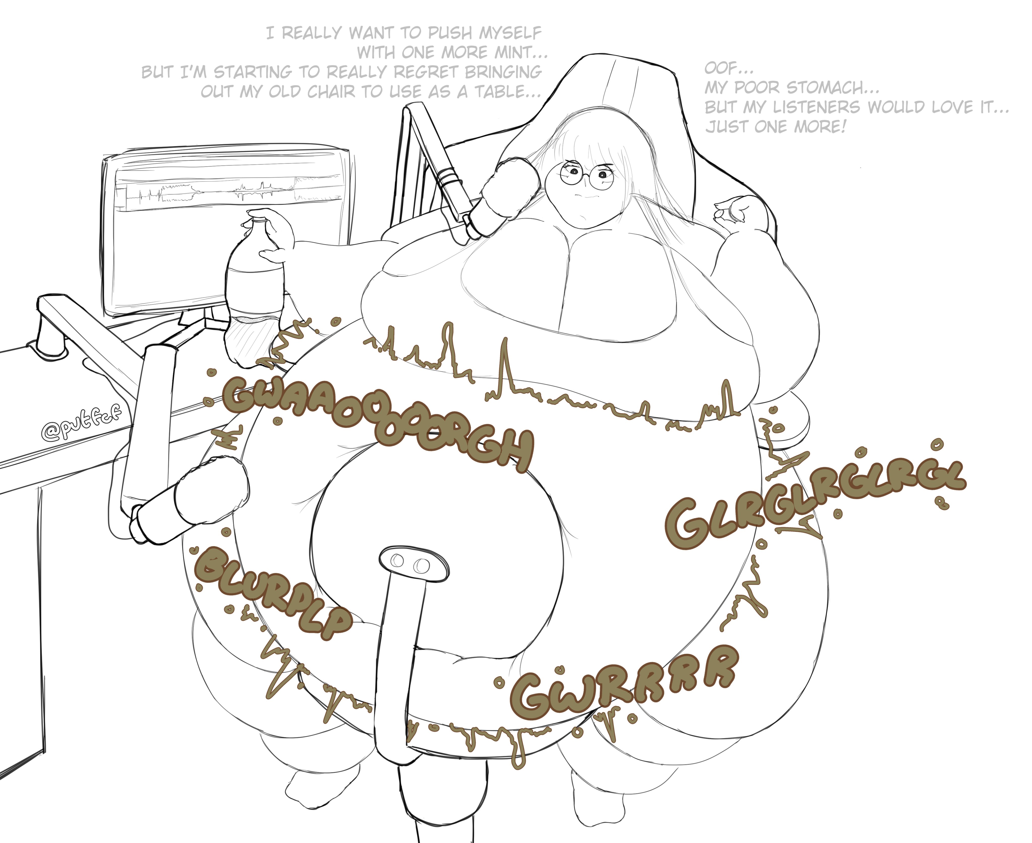 >>11483827I guess it's mostly puking, actually, but there's still obviously a tremendous amount of gas in there. Here:>Have another bottle of SoulGlad.>(4th time option is selected)>*Gulp*............ *Gulp*............ >*Gulp*............>Oh no... you realize that you should have listened to reason long ago, and now you find yourself in trouble.>You feel belching and flatulence in your abdomen, roiling into an intense surge of heat that rushes rapidly towards any available exit.>It effortlessly breaches every barrier within your body's construction, forcing open your mouth with no self-control. >Eventually, it became a pool of rainbow-shaded vomit that completely ruins your meticulously arranged work environment.>The few customers nearby are scared away by this horrifying scene... Perhaps this is another way to alleviate your workload?>>11484378Agreed. Just hard to find good rumbles for boys.