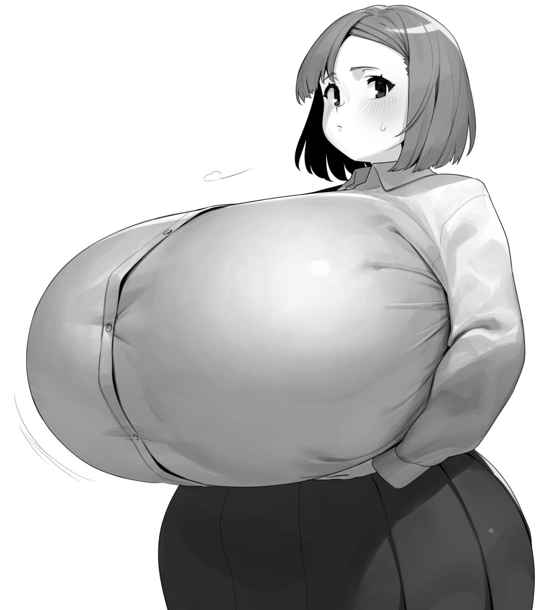 Anyone have more of huge breasts bursting buttons, tearing out of overstressed tops or general wardrobe malfunctions? I love that stuff. Too big to contain.