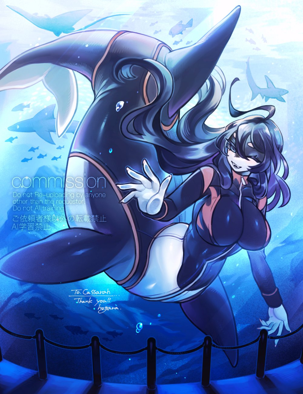 What's the best way to do aquatic monstergirls?>Waist begins at the inhuman sides head/neck to include dorsal/pectoral fins, essentially a centaur type bodyplan.>Perfect 50/50 split where the waist connects to the midsection, like most mermaids.>Legged humanoid with a shark/fish/whale tail.