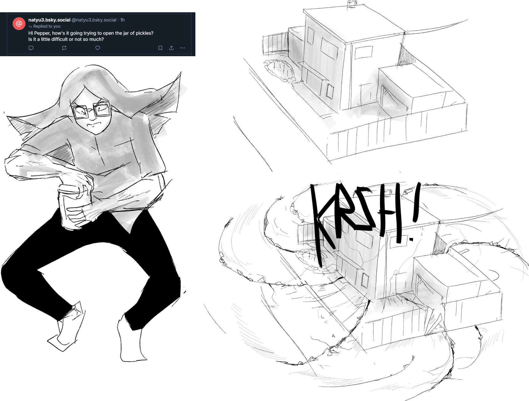 >>11378337Makes sense.>>11378349>girl so strong her feats of strength can't be comprehended as such, and go completely unremarked upon. "I guess the barbell just did that"Lel, reminds me of picrel>the barbell hasn't realized it's been liftedWhat a fun concept to think about.>>11378372Yeah I totally get it. The end goal is always to just convey the "idea" of the immenseness of whatever feat is being described. Scientific bullshittery just serves as the finery for the feat to really impress and sell it to the audience. It's also trickier to do it this way than to simply put the "infinity sign" on a barbell and having your character lift it with her pinky.