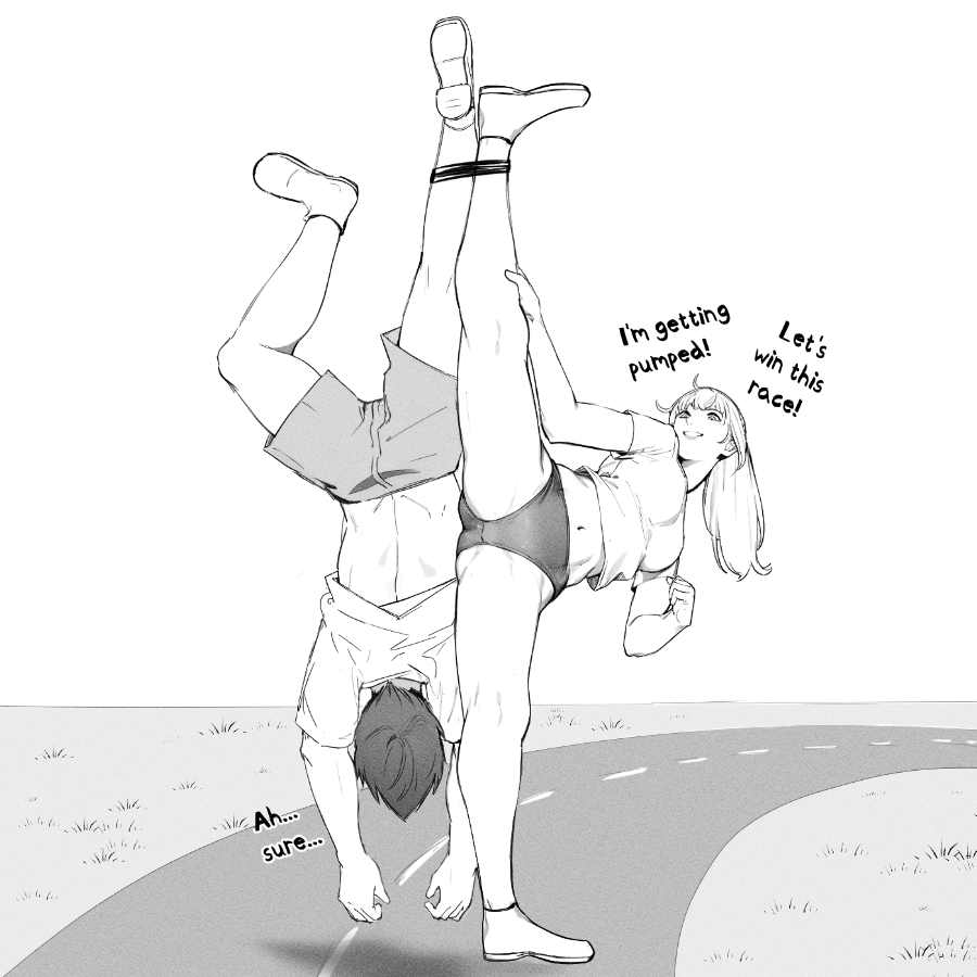 >>11403439Yay!Girl doing squats. She's actually moving the whole earth downwardhttps://www.youtube.com/watch?v=J0t5krM8YeI but with cute girlsGirl lifts a massive barbell, like with giant weight and miles-length amount of them, as she boasts to her friend about how she told her she can do it. But beyond eyesight her mom is the one lifting it with one hand. Complaining about her daughter's stubborness and competitiveness