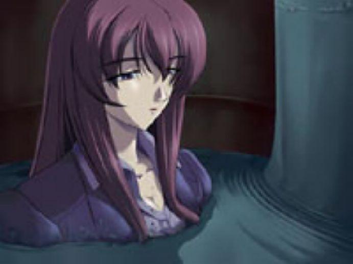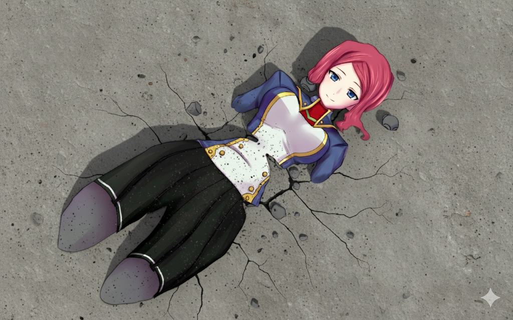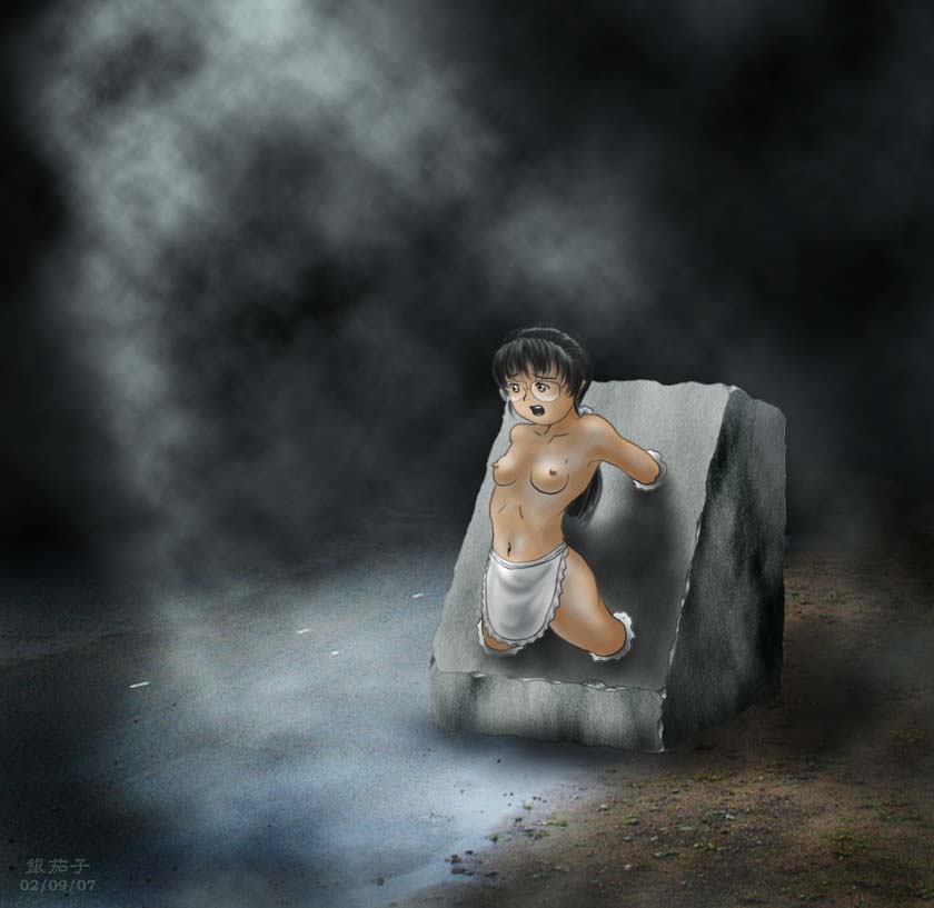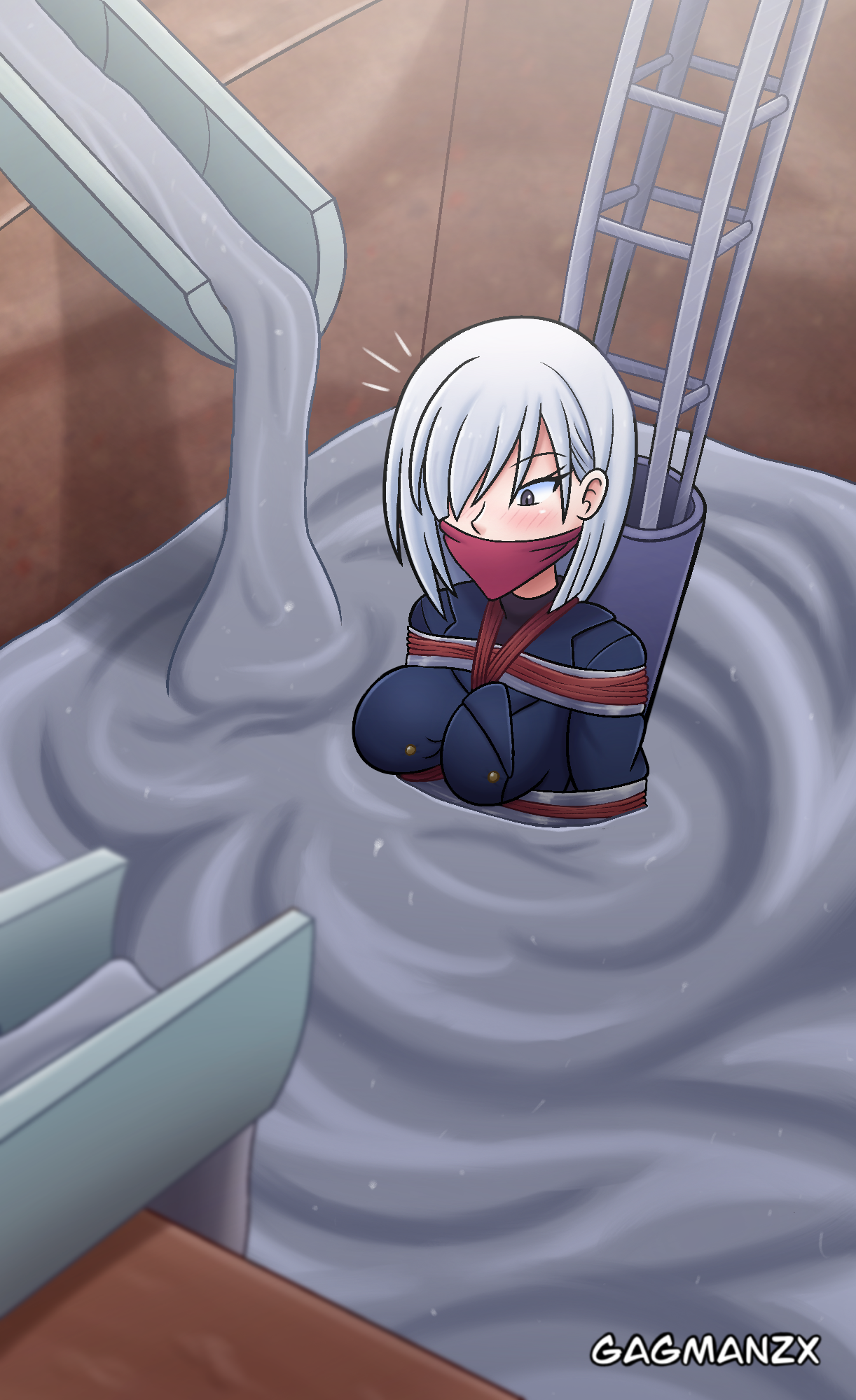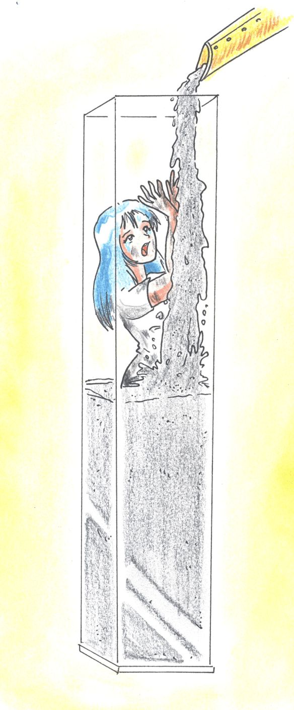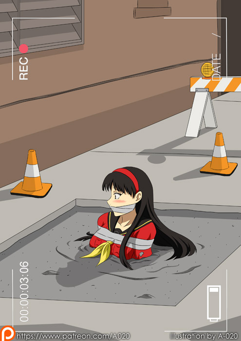Not concrete, but tar, though still as good.Love her coming out of the pit, covered in tar while gasping for air, so sexy, but don't worry, she'll survive (idfk how though).