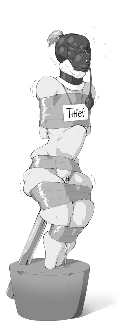 Something about only encasing her head really does it for me. Not enough to completely restrict her, but enough to keep her from doing anything about it. Also the chain being the only support.
