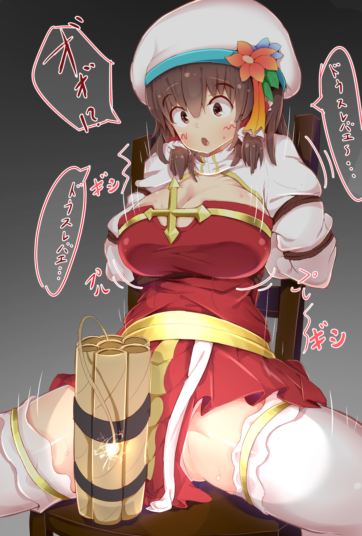 Love how scared she is watching that fuse burn.