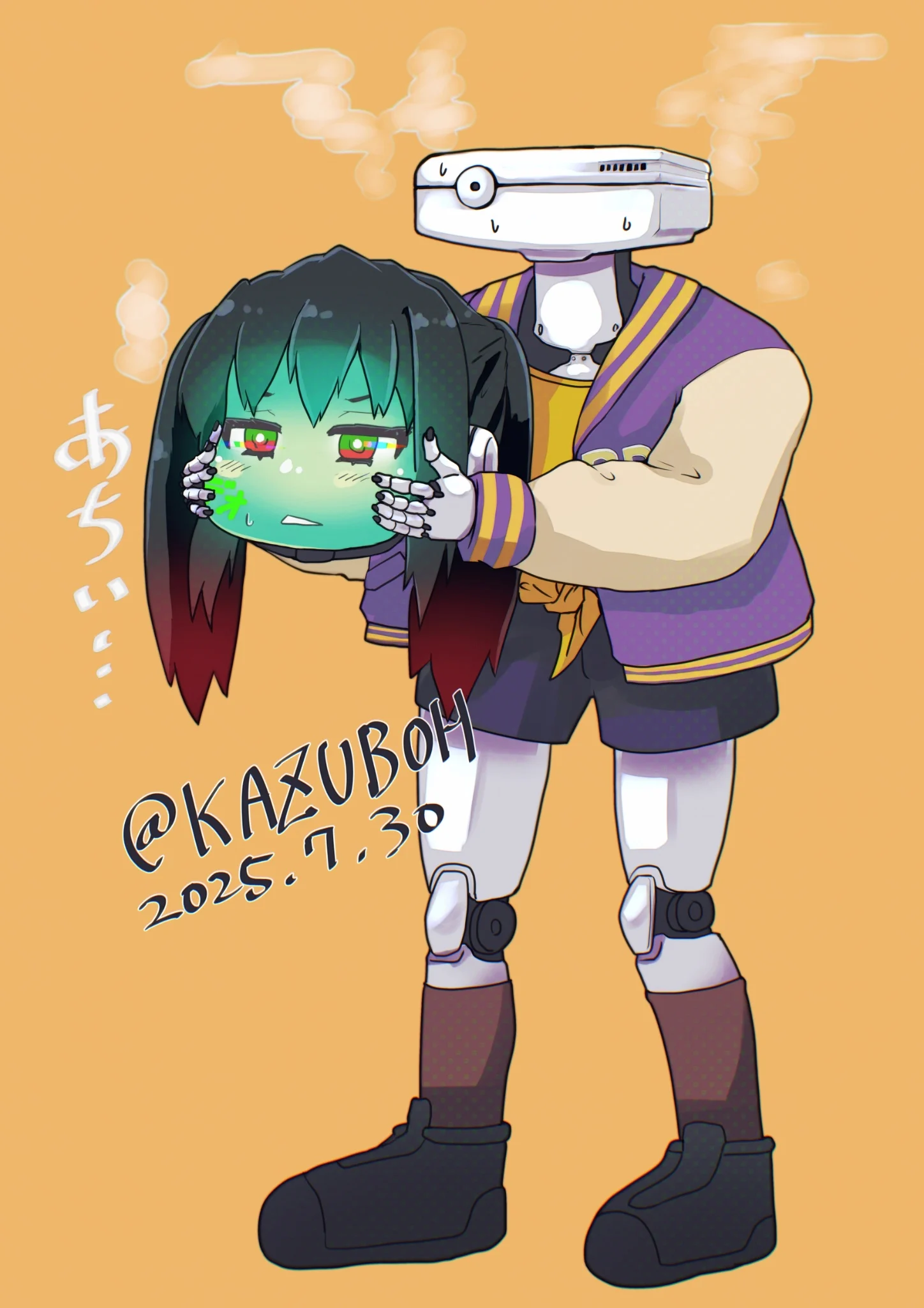 >Sui>The latest model android, rolled out last of the three. >Small and delicate, yet bright and energetic. >Excessive positivity causes her to lack social skills, leading others to quickly figure out she's an android. For better or for worse, she's treated like a peace of junk.>Passionate about band activities. Plays a hand-me-down electric guitar. She's terrible at it with no sign of improvement; her model isn't built to skillfully handle stringed instruments to begin with.>Wears a hoodie from her personal wardrobe to school, breaking regulations. >YAMAHA REVSTER>She plays guitar and sings, but for some reason only picks Showa-era pop songs. (And she's terrible at it)
