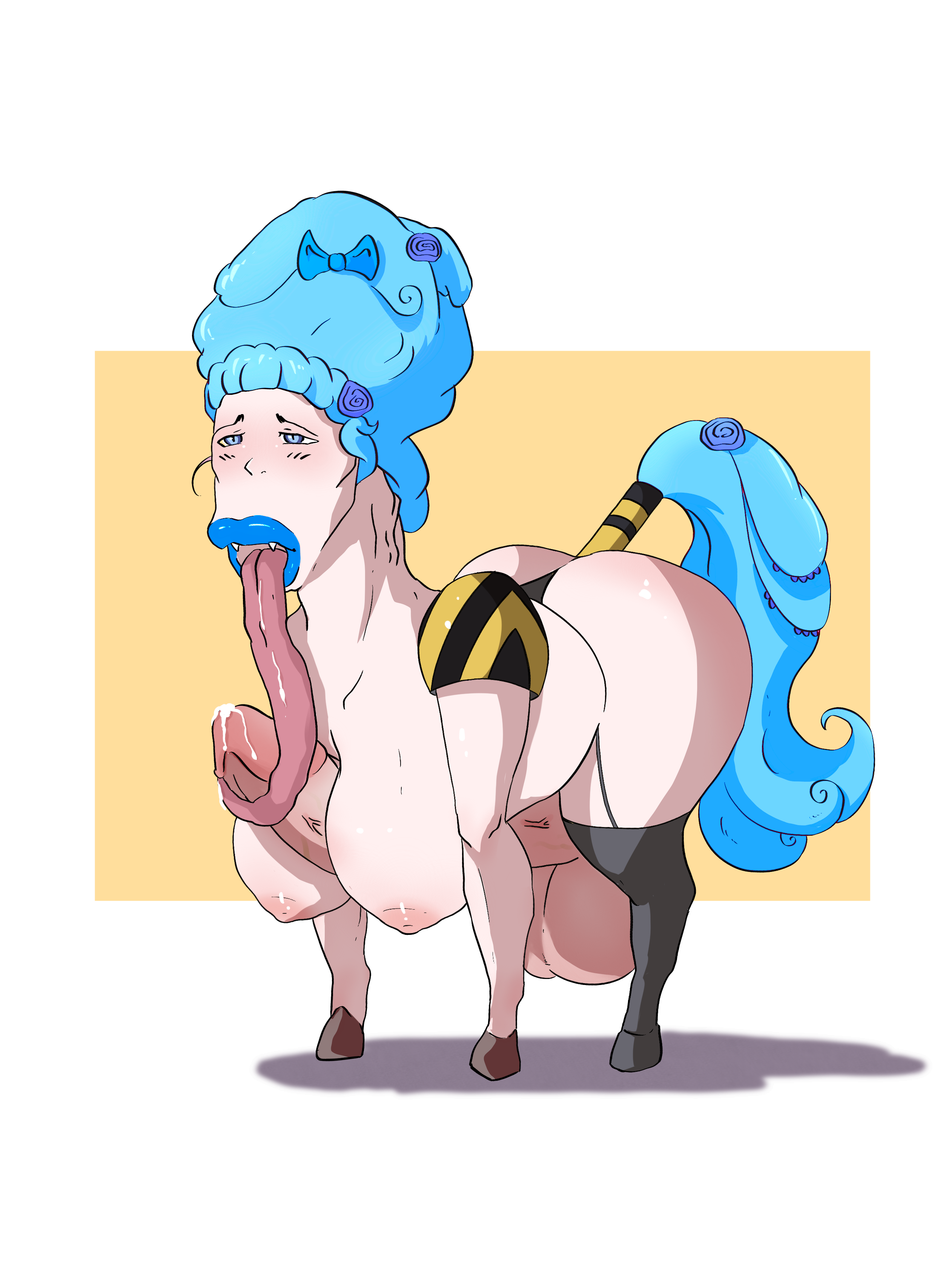 Mmm...Jeez, I love her low-hanging testicles.~ And that long cock sticking out between her front udders.~ She's going to make a great Breeding Stallion.~ She might not like what she's been turned into right now, but she'll come to love her big ass, cock, big low-hanging testicles, and her new life.~