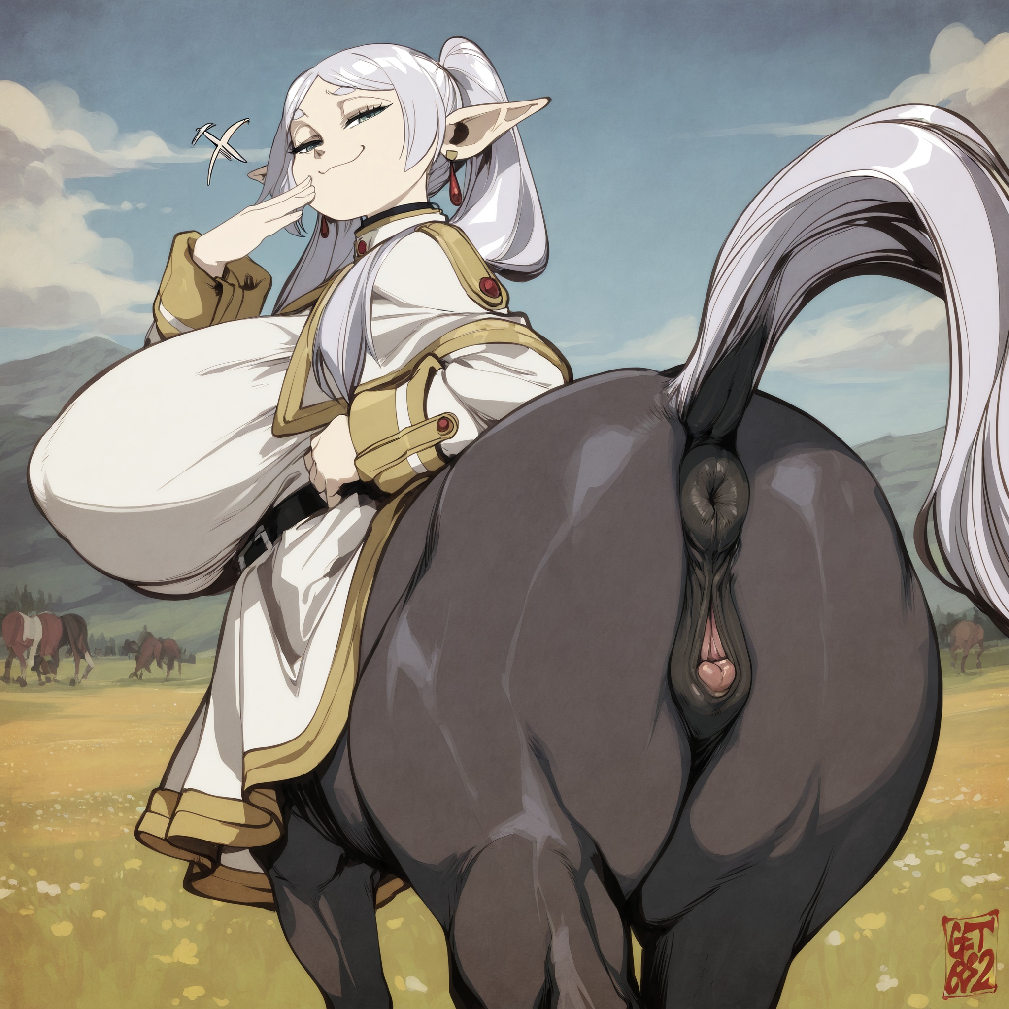 >>11404693Requesting a very buxom Centaur-Frieren, showing off her wide juicy taur booty at the viewer with a smug look on her face.