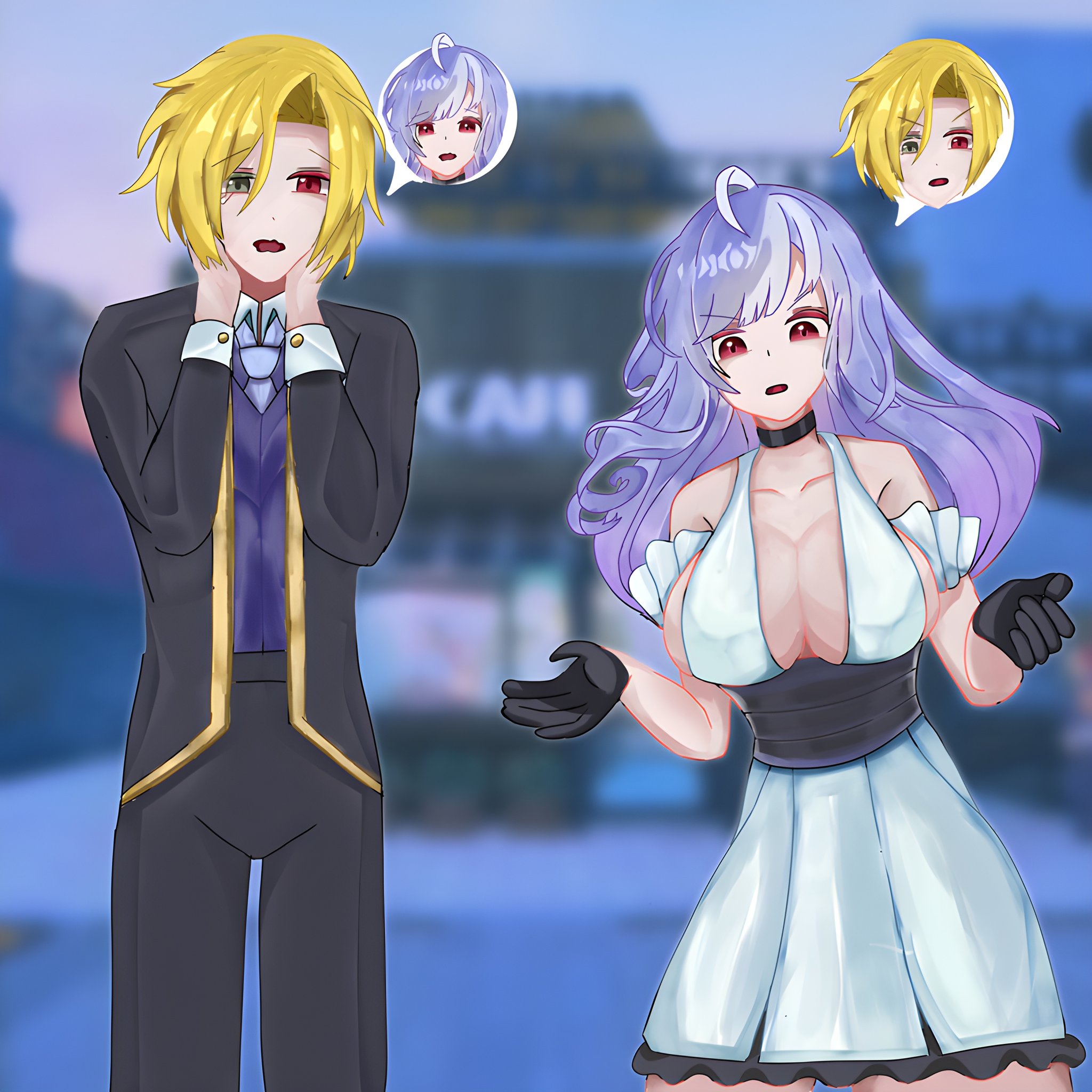 >several years after you and your friends graduated from college, you decide to plan a trip together to some far flung locale>choose Japan, because of course you would>A month later you're setting down your bags in a small hotel room in Tokyo>several days of touring the country and several nights of drunken shenanigans ensue>as your group stumbles through the streets on one such night, your friend points out a maid cafe>you're all very entertained that they actually exist, part of you had always assumed they were some kind of joke>another one of your friends suggests that everyone should go in, just to see what it's like>you're not exactly thrilled with the idea, but expressing that just makes them want to do it more>after a bit of coaxing, you reluctantly follow them inside>inside, the receptionist seats your group in a booth near the back of the mostly empty establishment>soon, a small group of women dressed low-cut french maid outfits greet you, taking your orders and making the sort of vaguely flirtatious small talk one would expect>in addition to this group, you notice one more maid, wiping down a nearby table>she looks up at your group, her eyes darting from person to person until they fall on you>her gaze lingers for a moment before she stands up and walks out of sight>you look back at your friend, who nods at you with an amused look in his eye>Then one of the maids speaks to you and you nearly forget about the whole exchange>until a few minutes later, when the maids serving your group have left for a moment, she quietly approaches your table and taps on your shoulder>"Excuse me, Mister, would you mind following me for a moment?" she asks, quietly>You try to politely refuse, or at least ask more about why she wants you specifically to follow her, but a slap on the shoulder from your friend sends you on your way>she leads you through a door, behind the kitchen and into some kind of store room