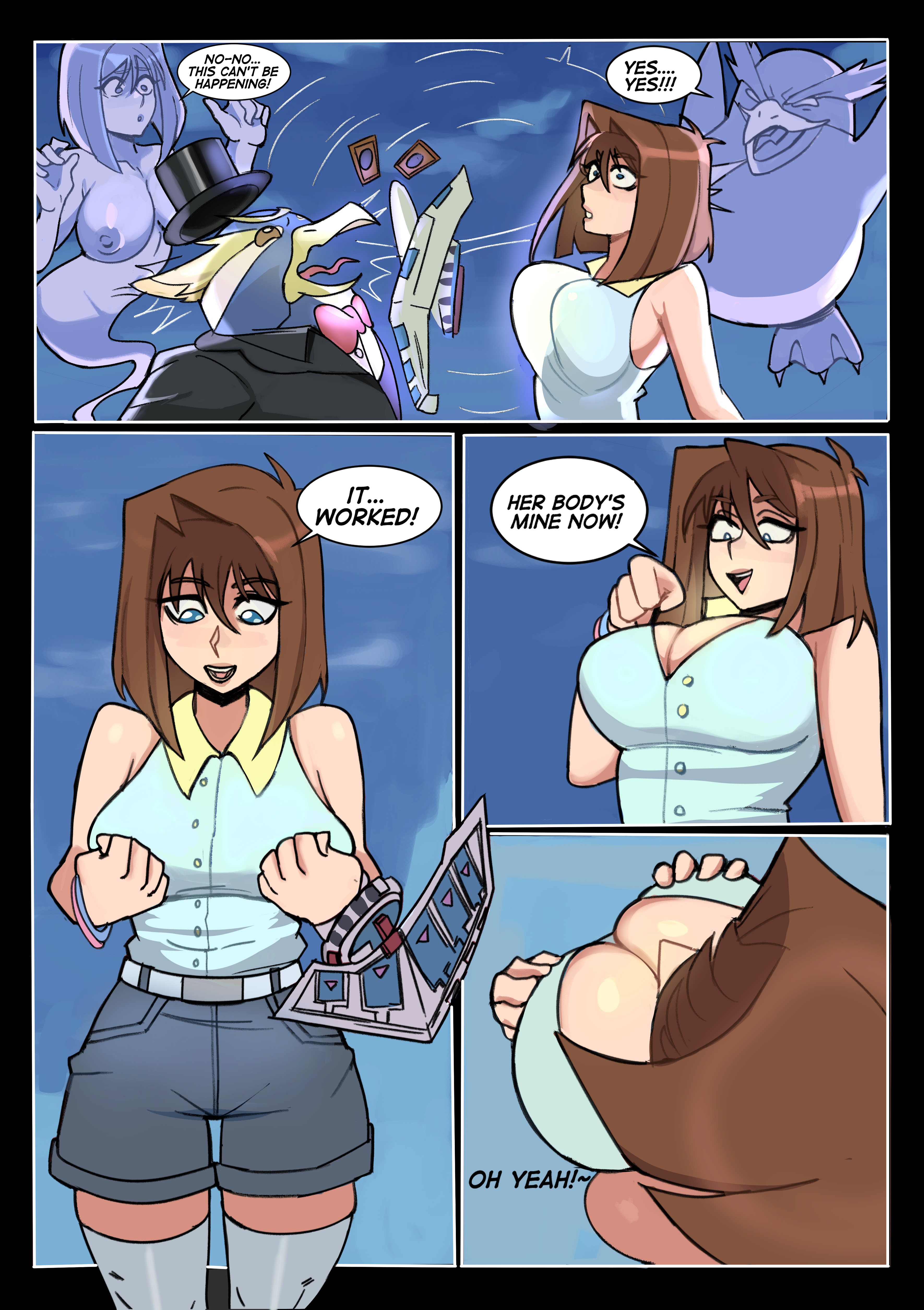>>11458317Agree. it's disappointing he never does a part 2 to this story. Show us Crump dealing with the crazy shit of future story events as Tea, or how about a what if where he broke up with the team after Battlle City to become a Hooters Girl/Prostitute/Aquarium fucking worker. Something Anything new. Maybe, he just like seeing the body swapping process with Tea, but in that case why not take it slow for once, instead of the usual one page and it is done. I'll just end this with one positive note, and say his obsession with this swap did led to him making my favorite version of it after he has done it five times already.