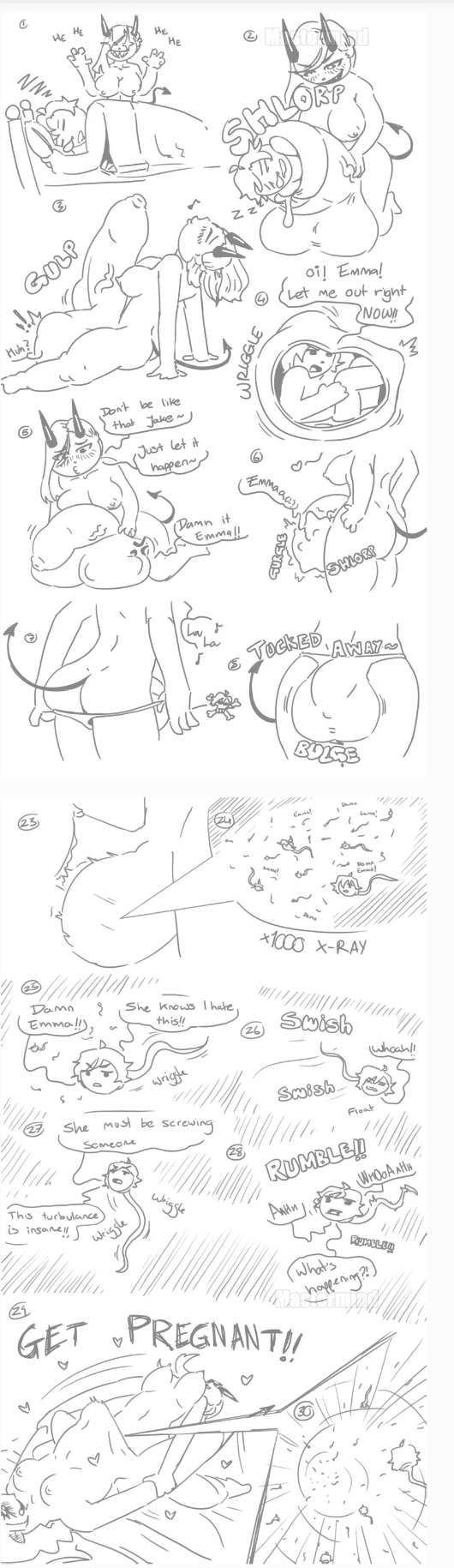 Anyone got any pics, sequences, or stories where the cockvore and digestions is followed up with sex with another person, preferrably knocking them up?