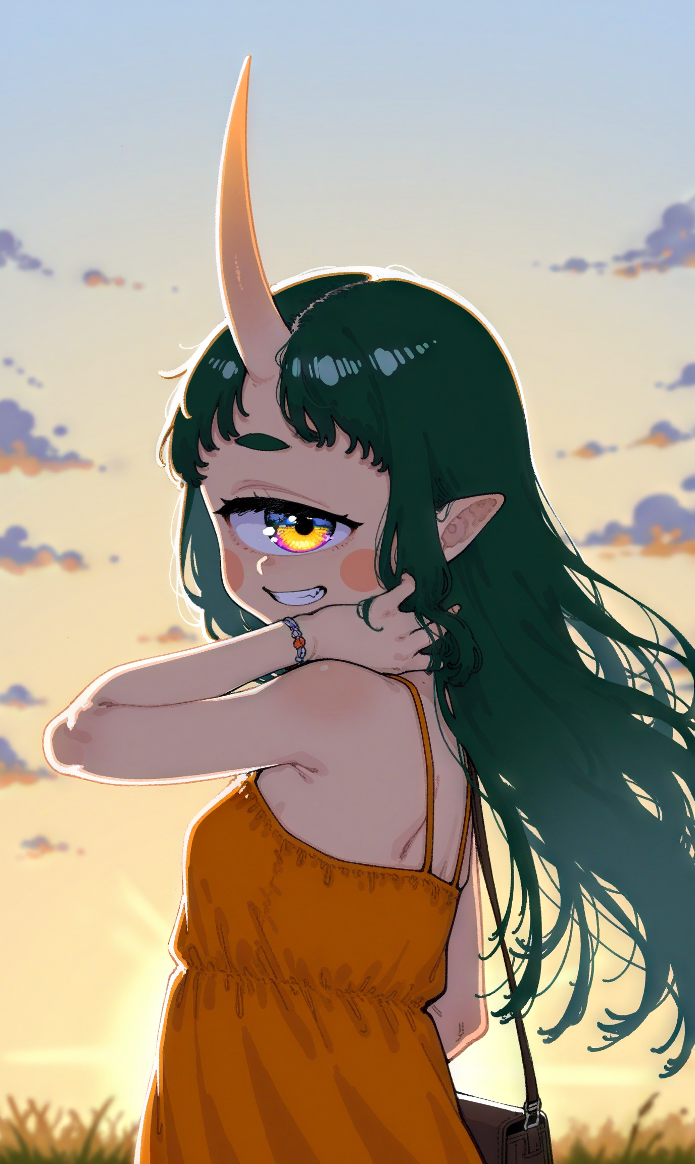 >>11417848>naked belt with just gems hanging from itI prompted for 'belly chain' , 'body jewelry' and yellow gemstones and that's what the machine gave me lol> if she's intended to be blushingI saw it more like 'heat' blush and I prompted for it just to add even more color. I didn't really now how I'd gen a personification of a planet other than the colors of that planet hahaha> the curve in your catbox is indeed just much more insaneKEK Yeah I kind of went all in since it was the last gen. This is what the sketch looked like:https://litter.catbox.moe/396hnw53zmquwaqp.png>>11417626Another take