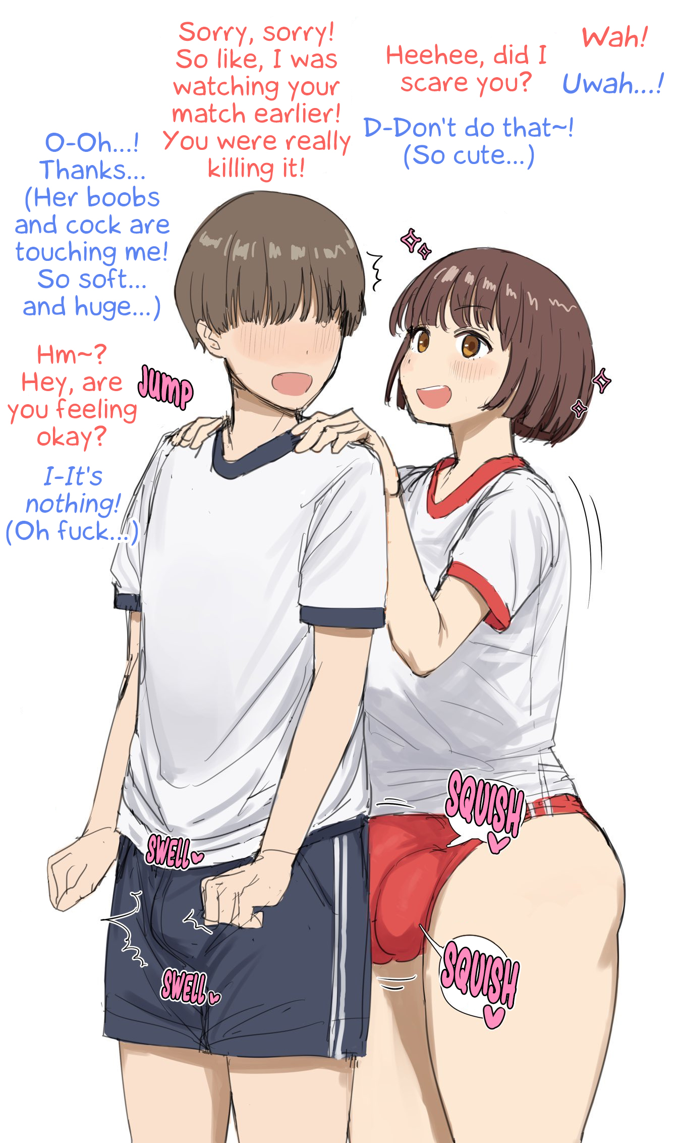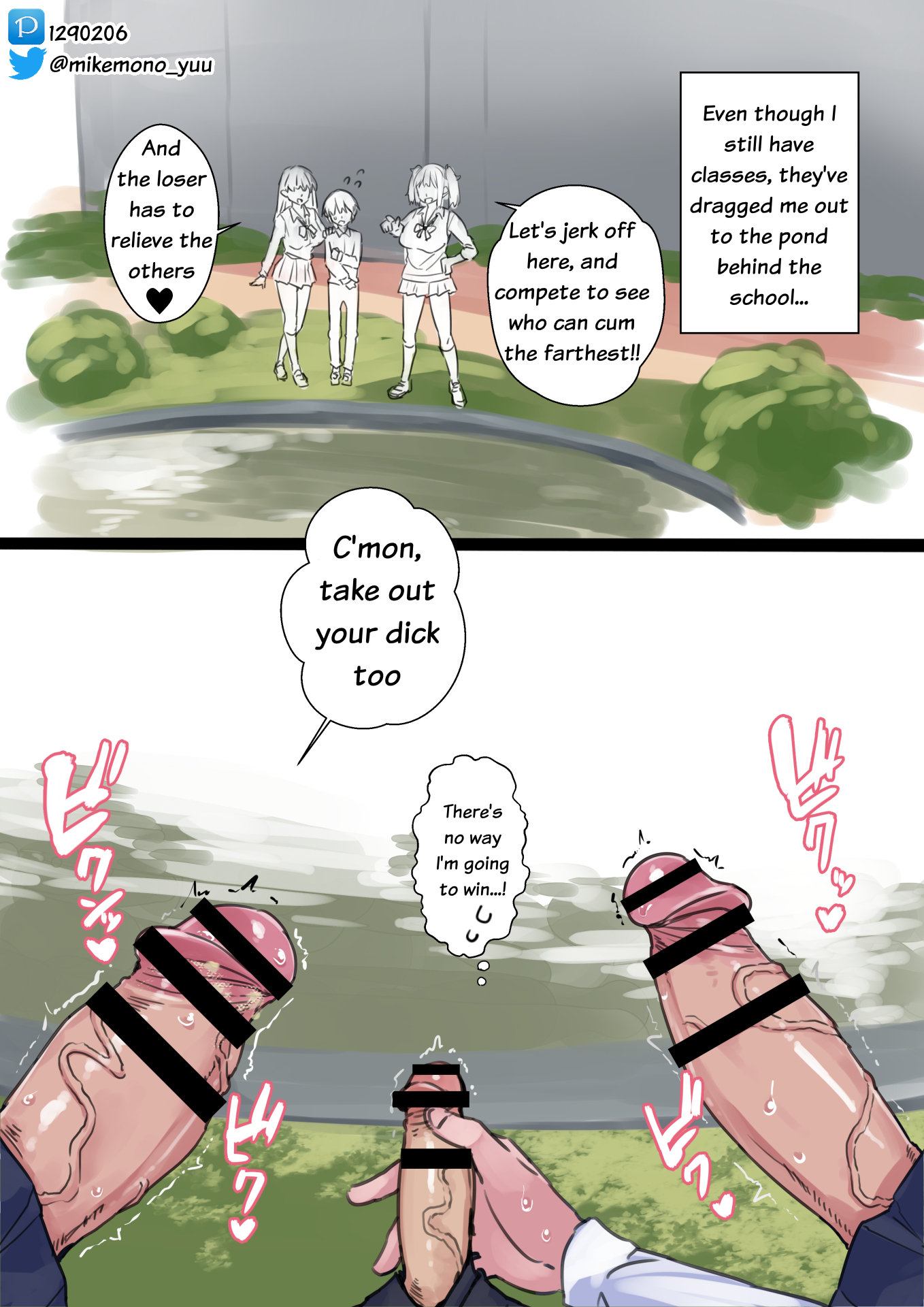 >How about that? A futanari who grew a cock on the same day as you... Who should be on the same level as you... having proper mating sex with a curvy woman who would never even touch your 'dick' with her bare hands