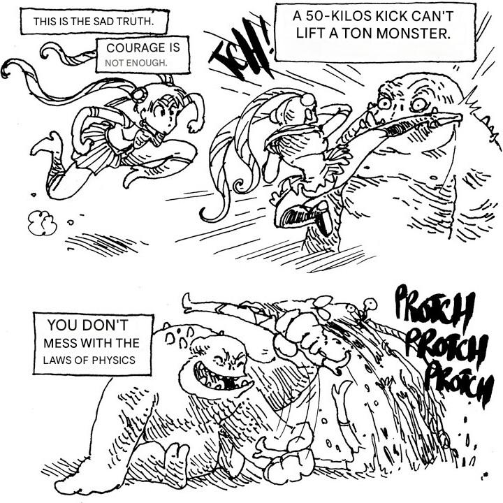 >>11438456>>11438459same, or being stepped on by much bigger opponents (there was one great one of that with a knight girl but I can't find it). I mainly just really like when a girl is getting hit so hard she almost becomes like a rag doll