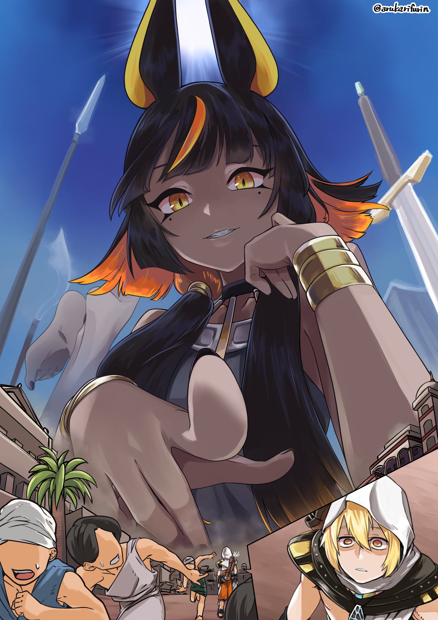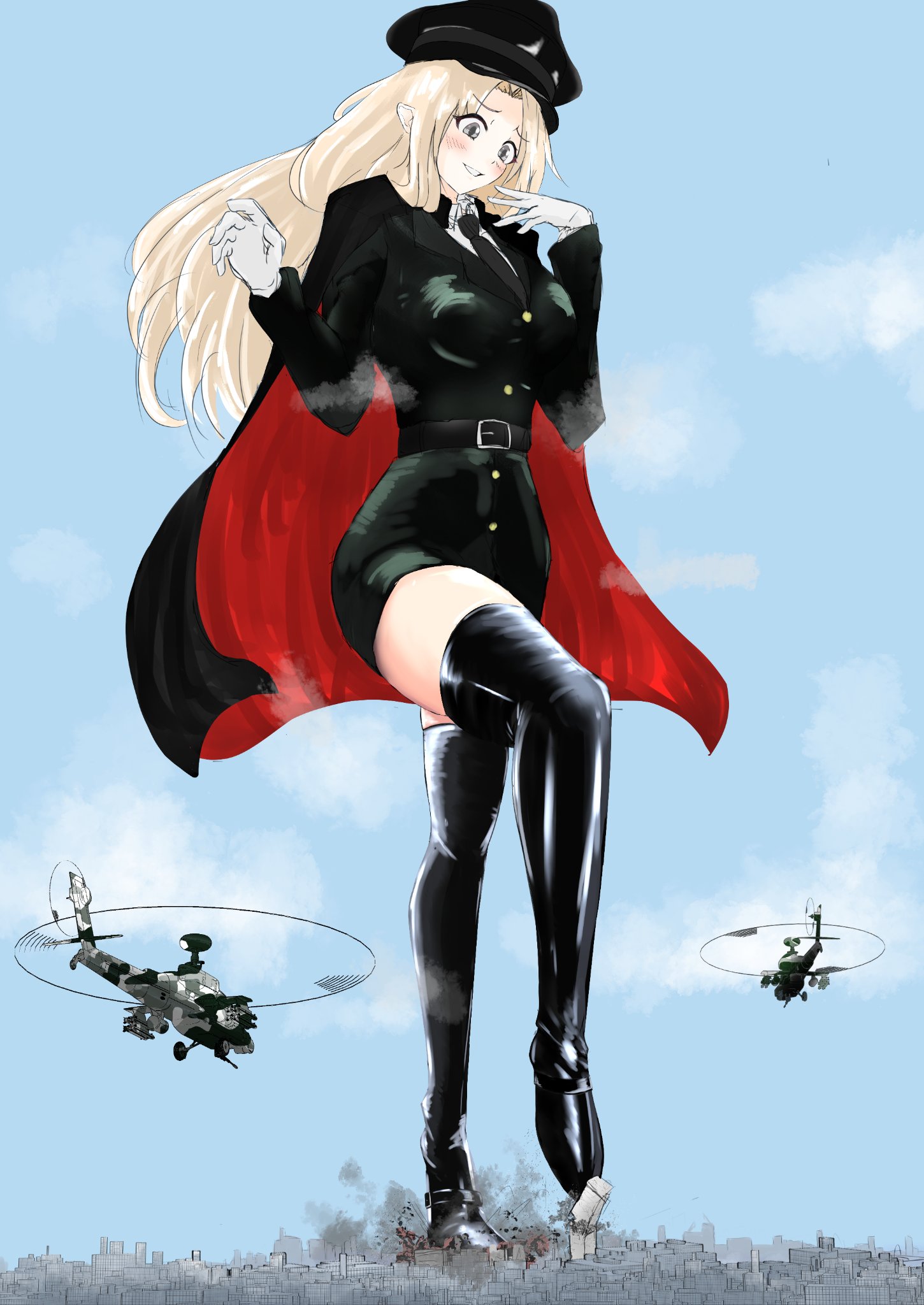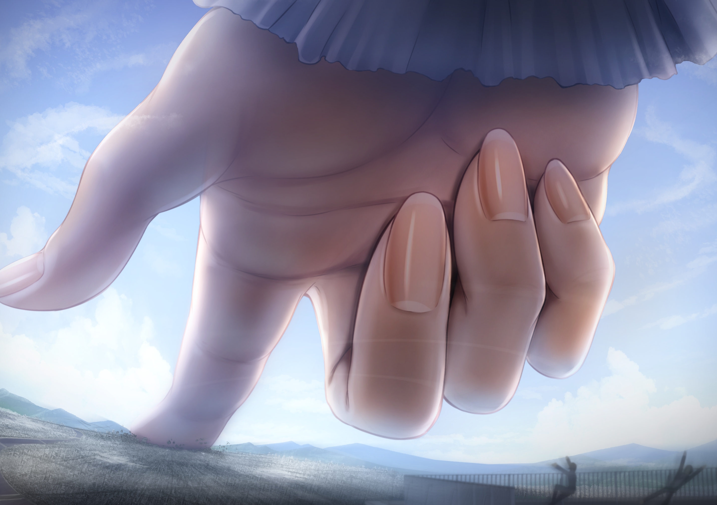 >>11425846>Born too late to fight in the Middle East against giant catgirlsHumanity barely survives, and the giantess actions contaminate a lot of land. Don't know where the series would be going, but giant discarded clothes towering over the landscape is underrated, and I am glad to see more of it
