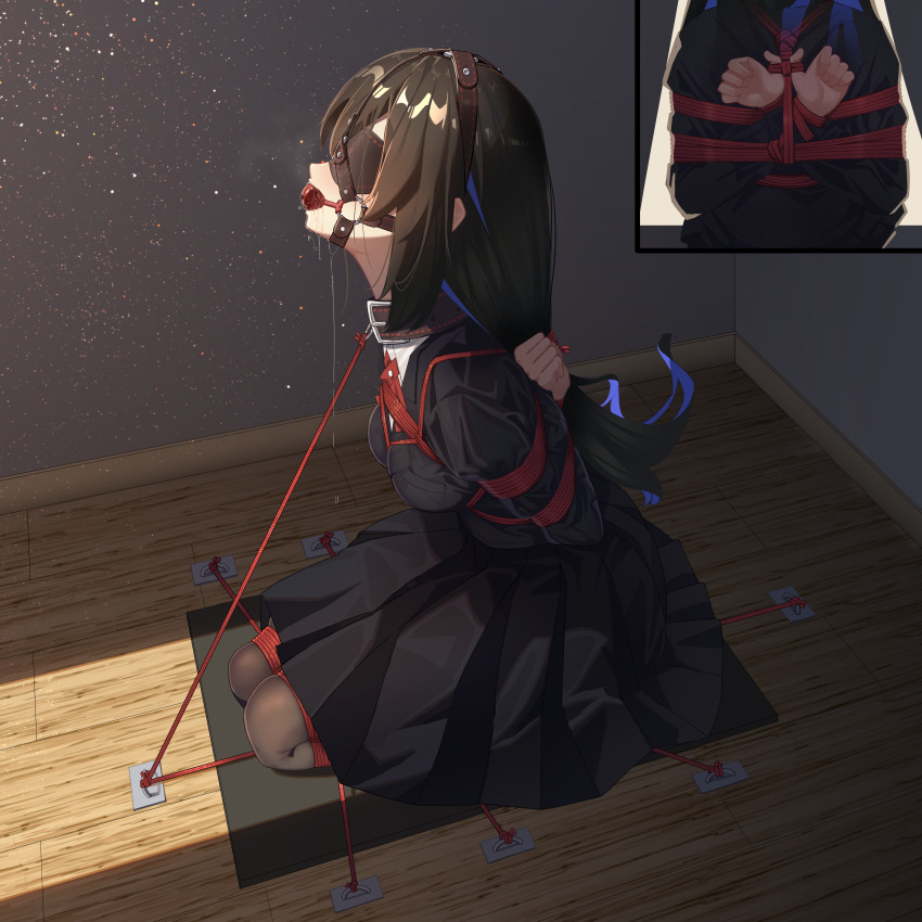 I'd keep my slaves in a purpose-made slave suit. It'd resemble pic related; a straitjacket that exposes the breasts, plus a harness/plug gag, and ankle cuffs and thigh bands. In addition to the baseline straitjacket restraint, it'd have buckles and snaps to allow connecting wrists to shoulders and ankles to thighs, both arms together arm-binder style, etc. The suit's gloves would be thin and pliable enough that the slave can grasp and operate simple tools like a broom, but not buttons or zippers. A short clip-on hobble rope between ankles and/or thighs would be standard, to ensure the slave can't run. The suit itself would have a battery pack to power two main systems - vibes and electrodes. There'd be one large, powerful vibrator disc directly over the womb, and vibes clipped to and dangling from the slave's nipple piercings. Electrodes would include some sited to pass current through her groin to her tailbone and some passing current through her breasts. Both would be remote-controlled through a smartphone app. The suit would also include a tracking beacon that also works like an invisible fence for dogs - escape attempts would be stopped via powerful electroshock. The shock system would have a few settings - "electrostim" to help the vibrators, "punishment," which just gives full-power current as long as master's holding the button (adjustable strength if so desired,) and an automated "torture" setting, which turns on vibes/electrostim but gives punishment-strength shocks at random. The suit would also include a microphone for giving slaves orders remotely, and a small camera, so you can see what they're up to. It's aesthetically enhancing, but also quite practical - you could order your slave to go to the bedroom and wait for you there, and let the vibes/electrostim get her wet for you. And if she's having trouble walking fast enough while being stimulated, a few taps of the punishment button should get her ass in gear.