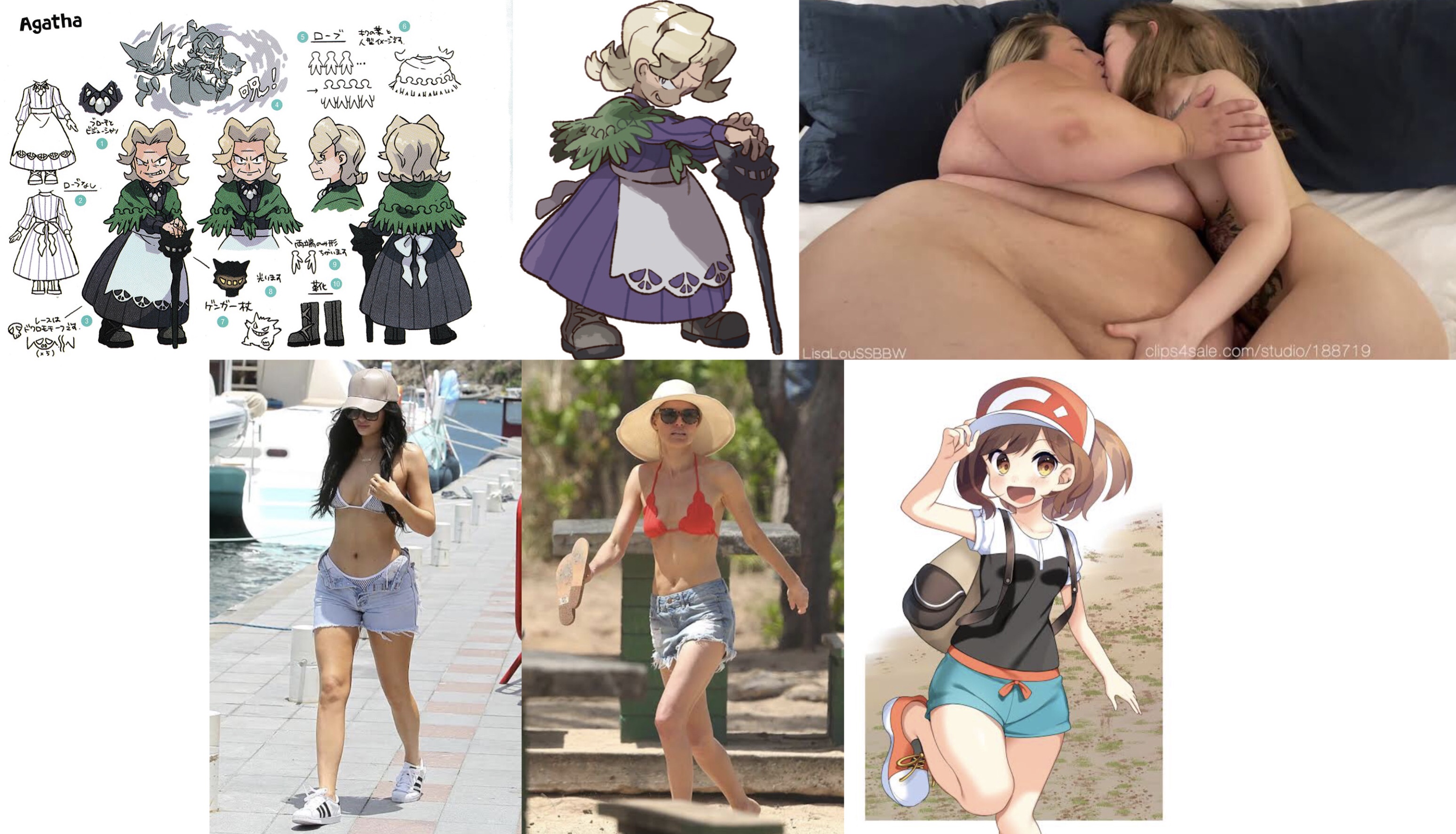 Requesting a SSBBW Agatha wearing a tight daisy duke bikini trying to seduce the female trainer from Pokemon Let’s Go Eevee and Let’s Go Pikachu or forcefully making out with her