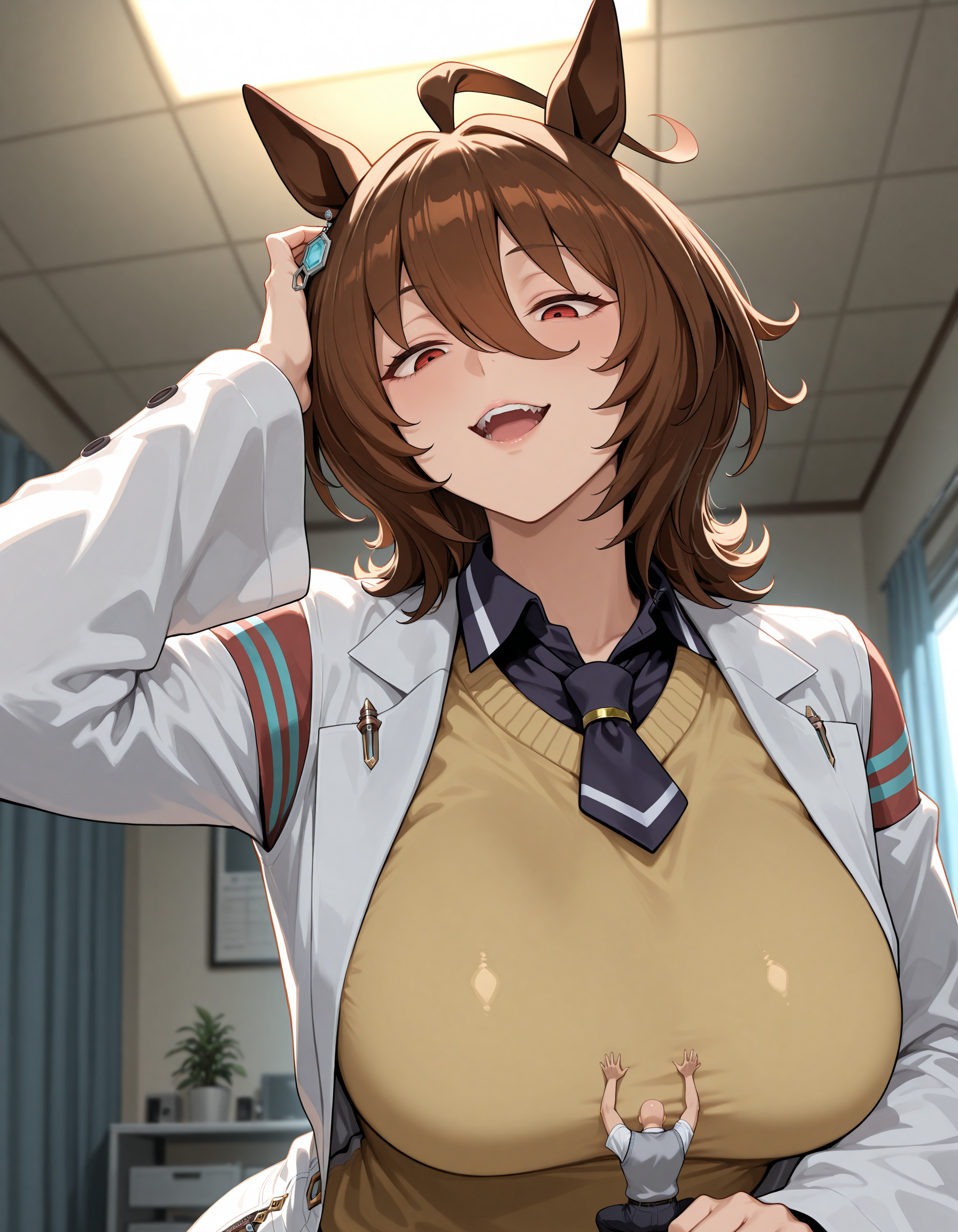 >>11435061Excuse the crude inpainting job, but here's Nagatoro showing her shrunken senpai this cool new foreigner anon she just met.