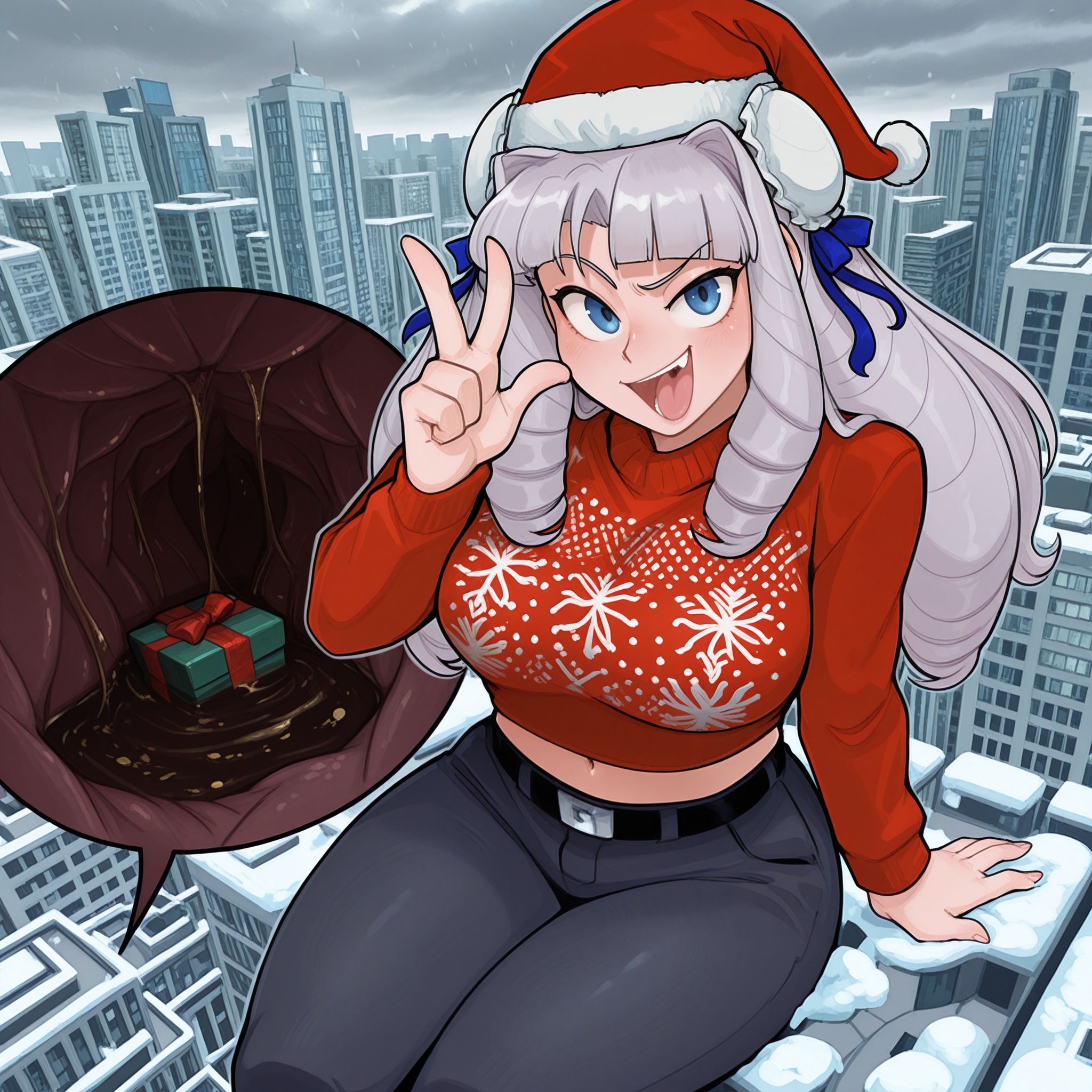 >>11433678May I have a Christmas Nagatoro helping a (Shota) Senpai deliver a white christmas to Japan while a smaller Prez either tries to stop them or at least shields the nation from the initial impact.